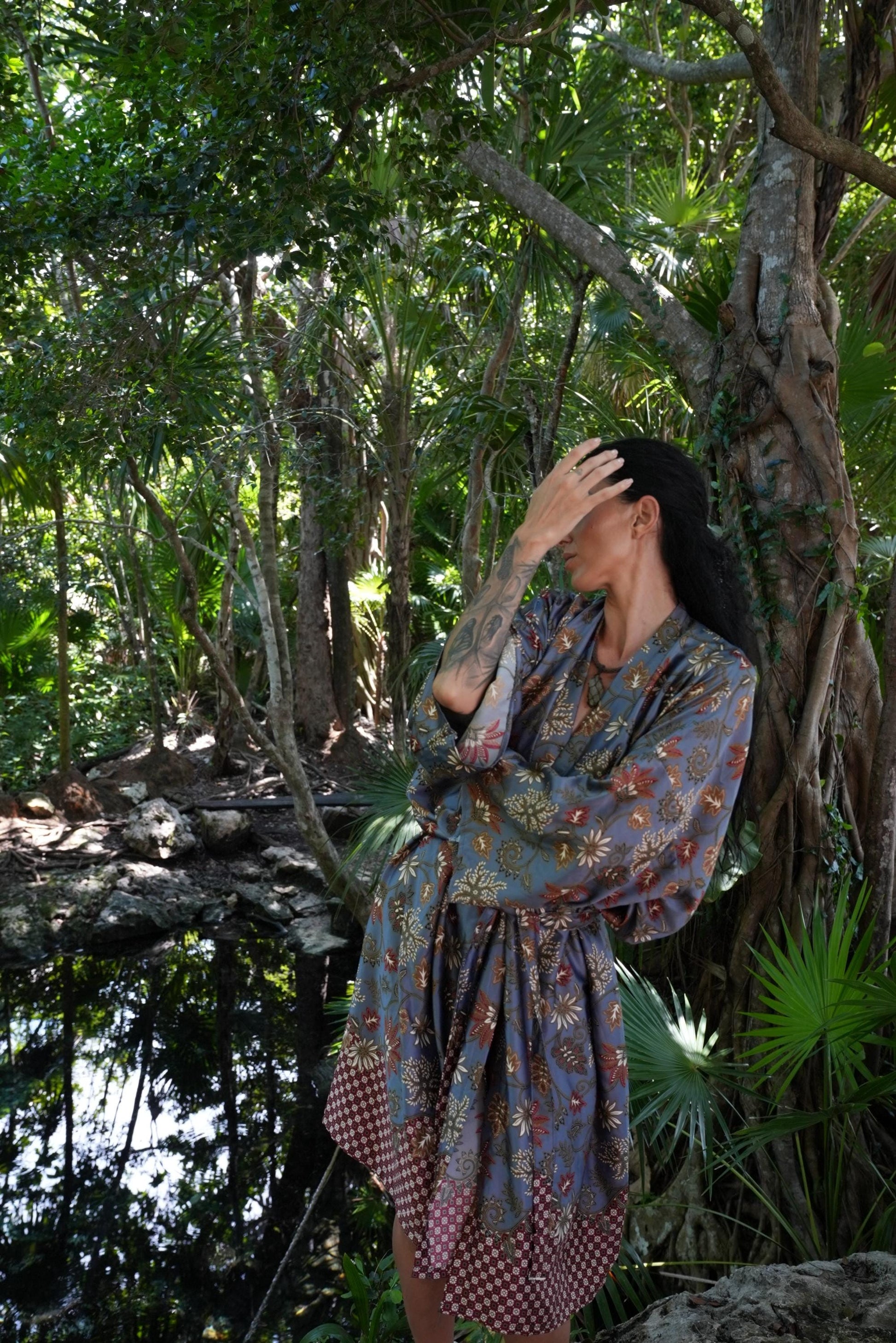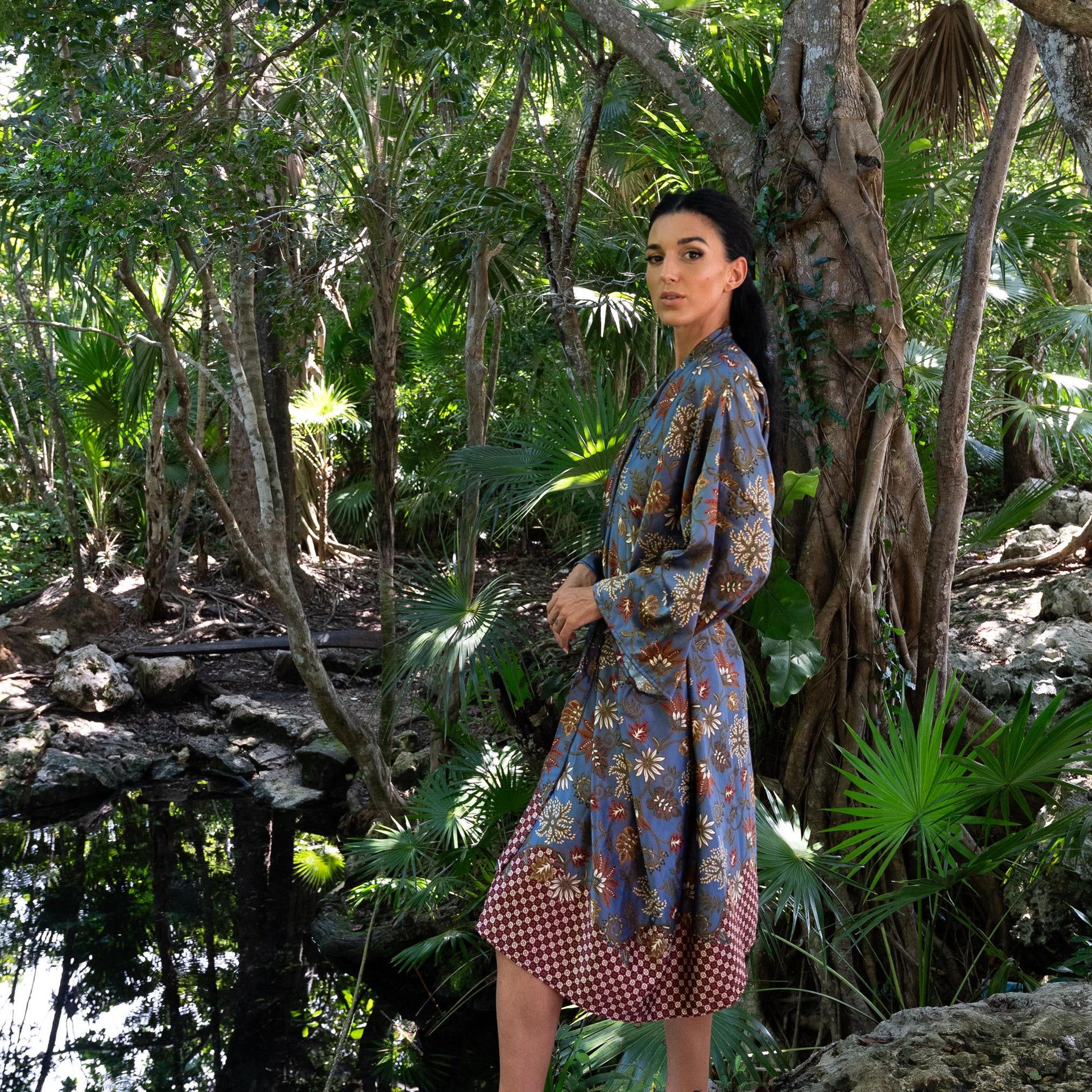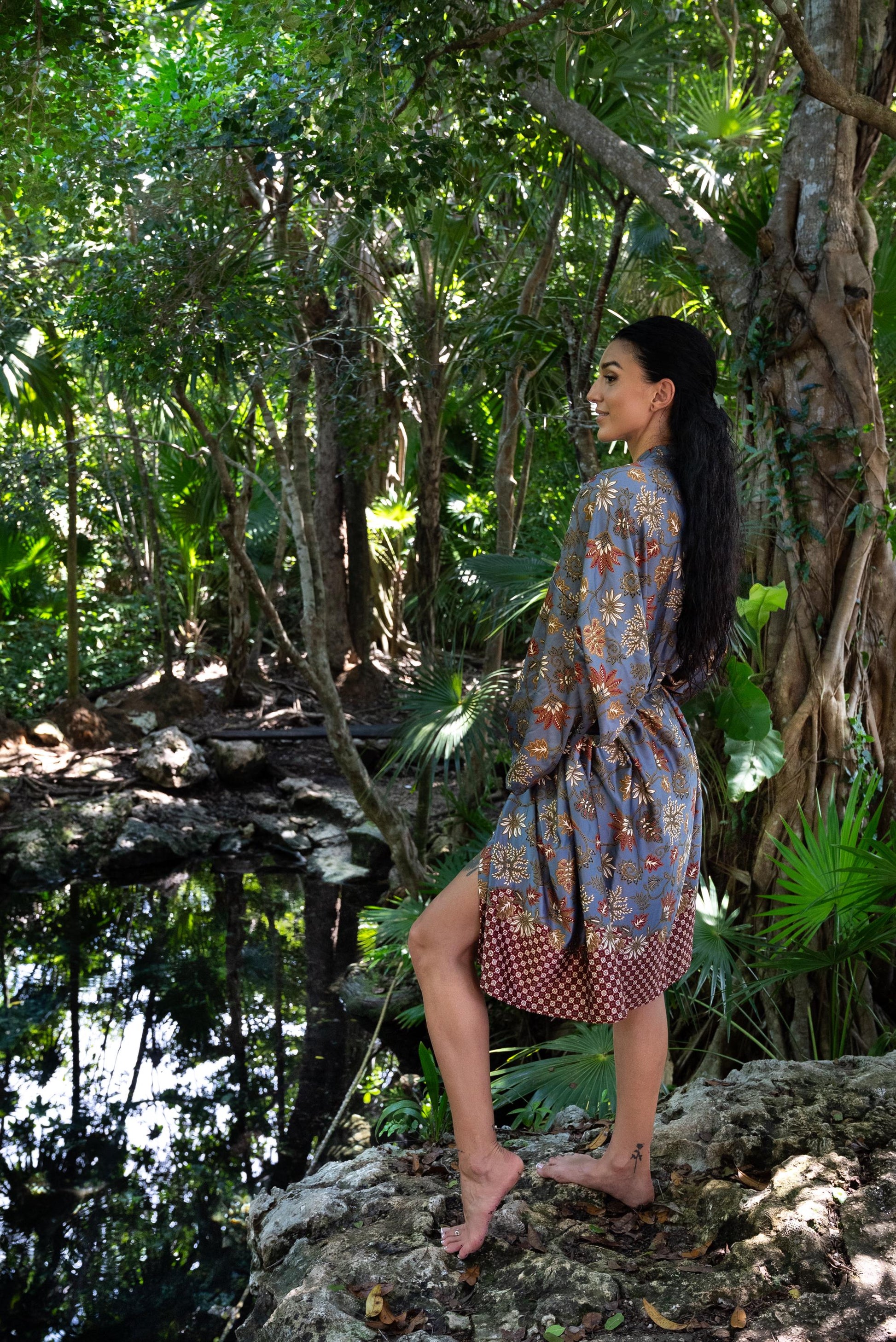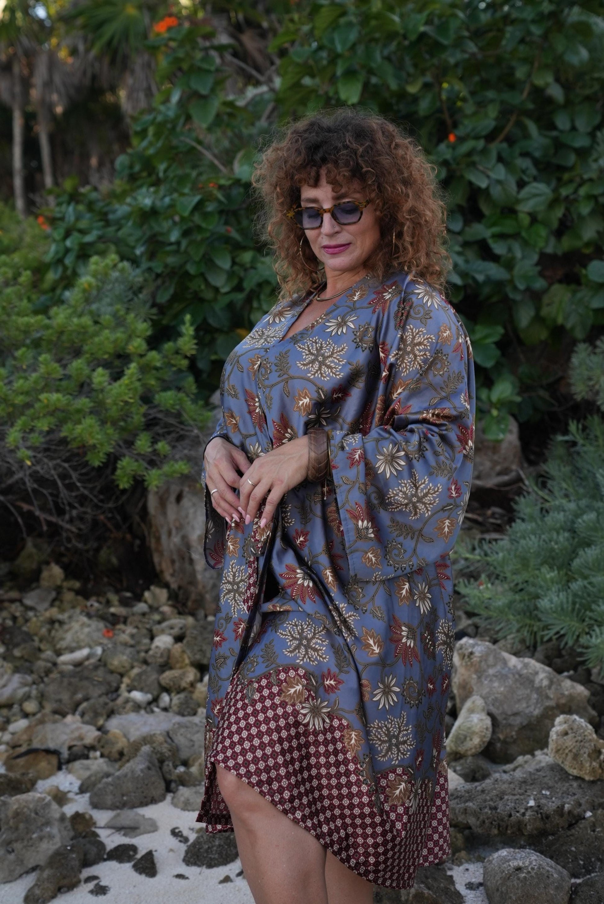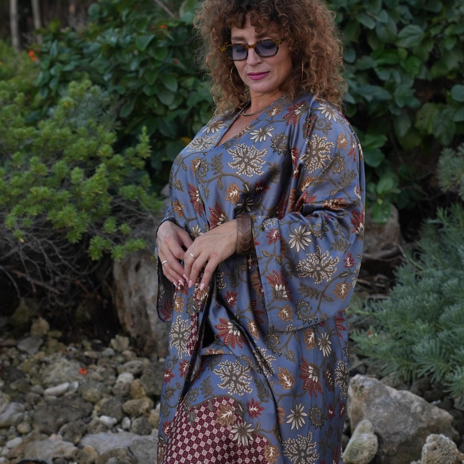 Add a touch of timeless elegance to your wardrobe with the Atlas Blend Bali Batik Kimono Robe Caftan.