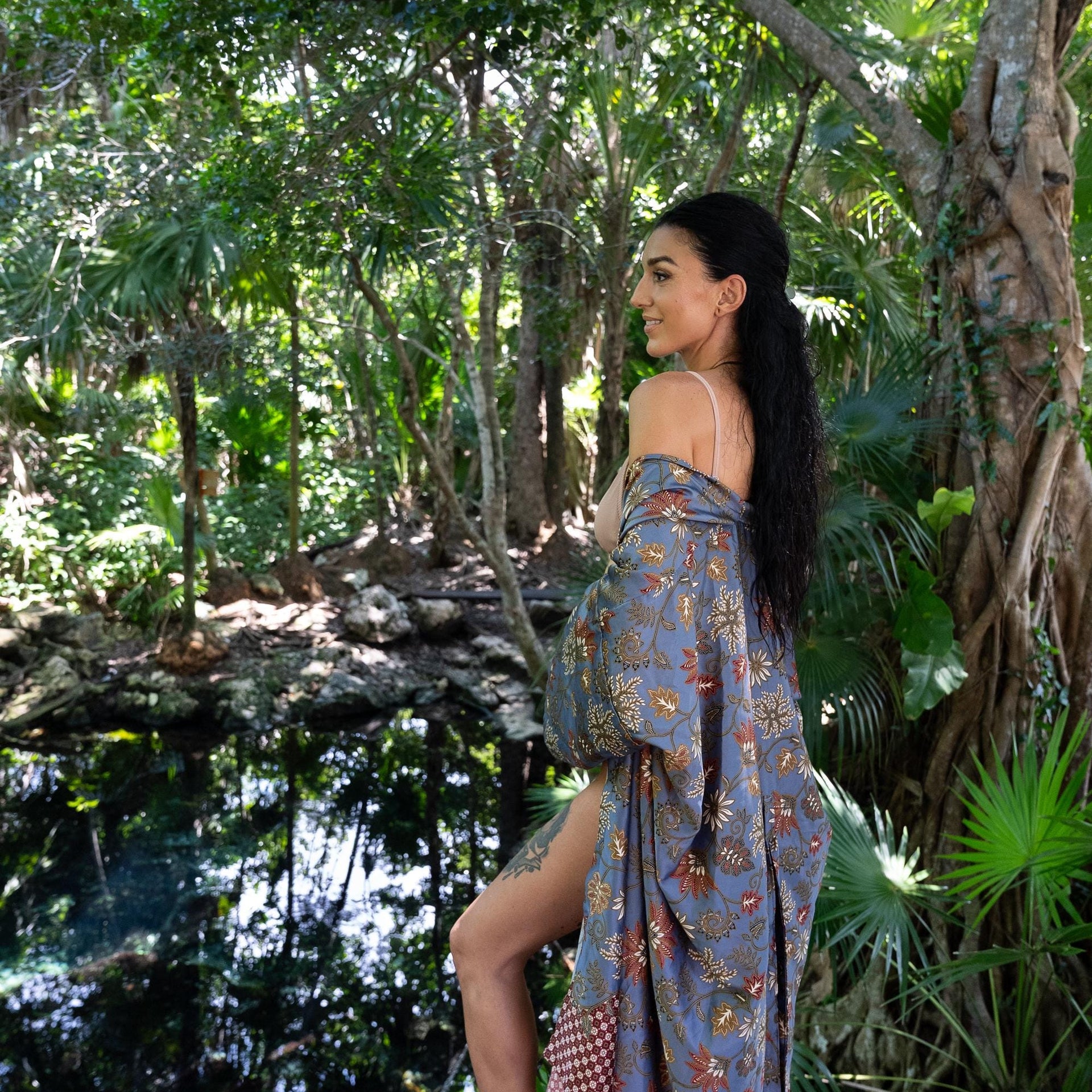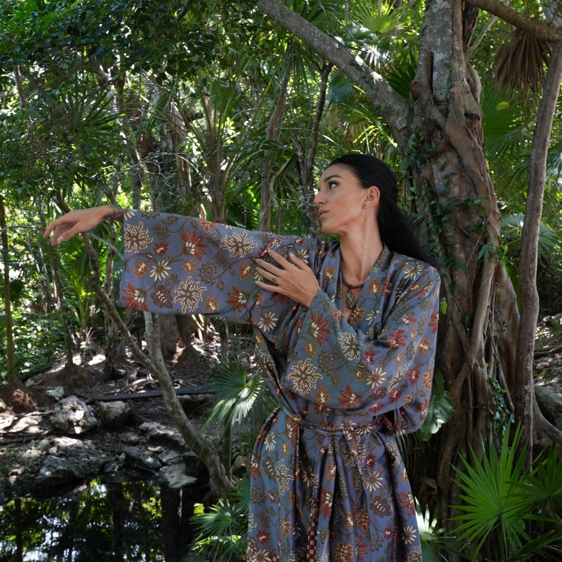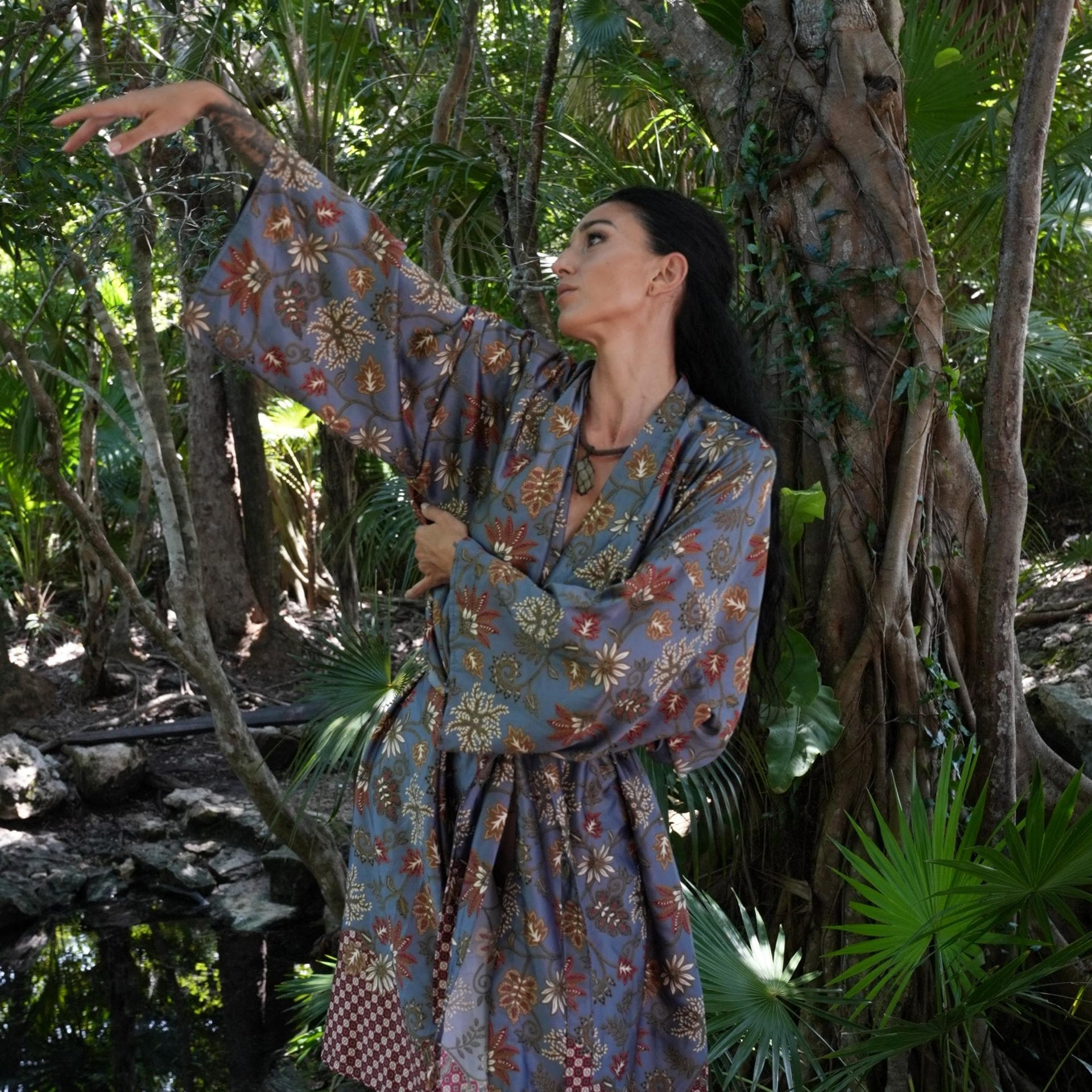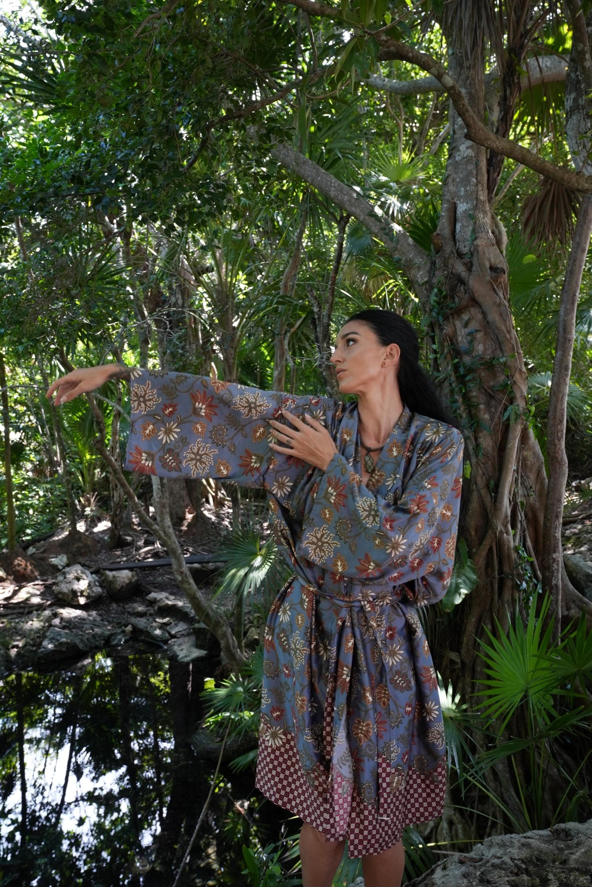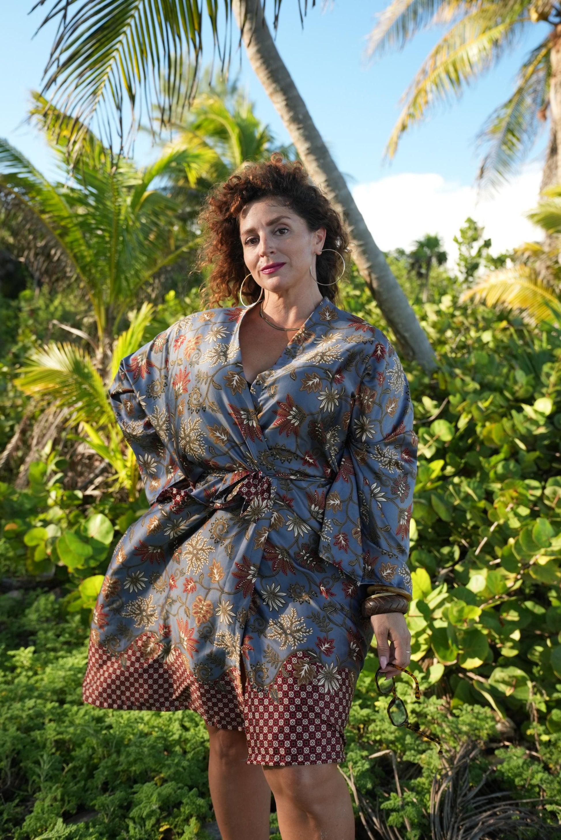 Add a touch of timeless elegance to your wardrobe with the Atlas Blend Bali Batik Kimono Robe Caftan.