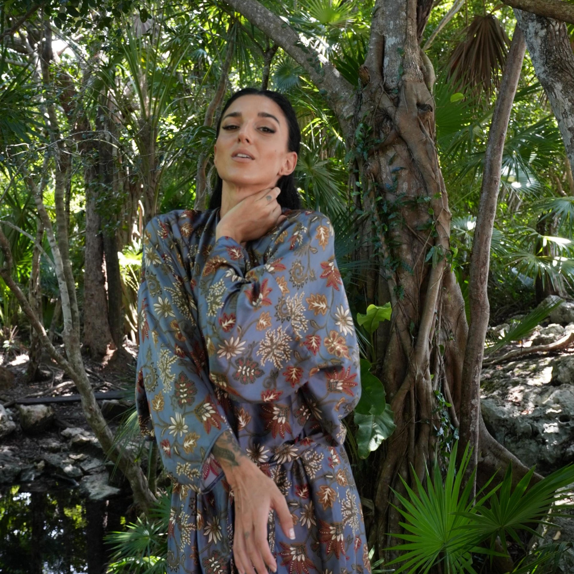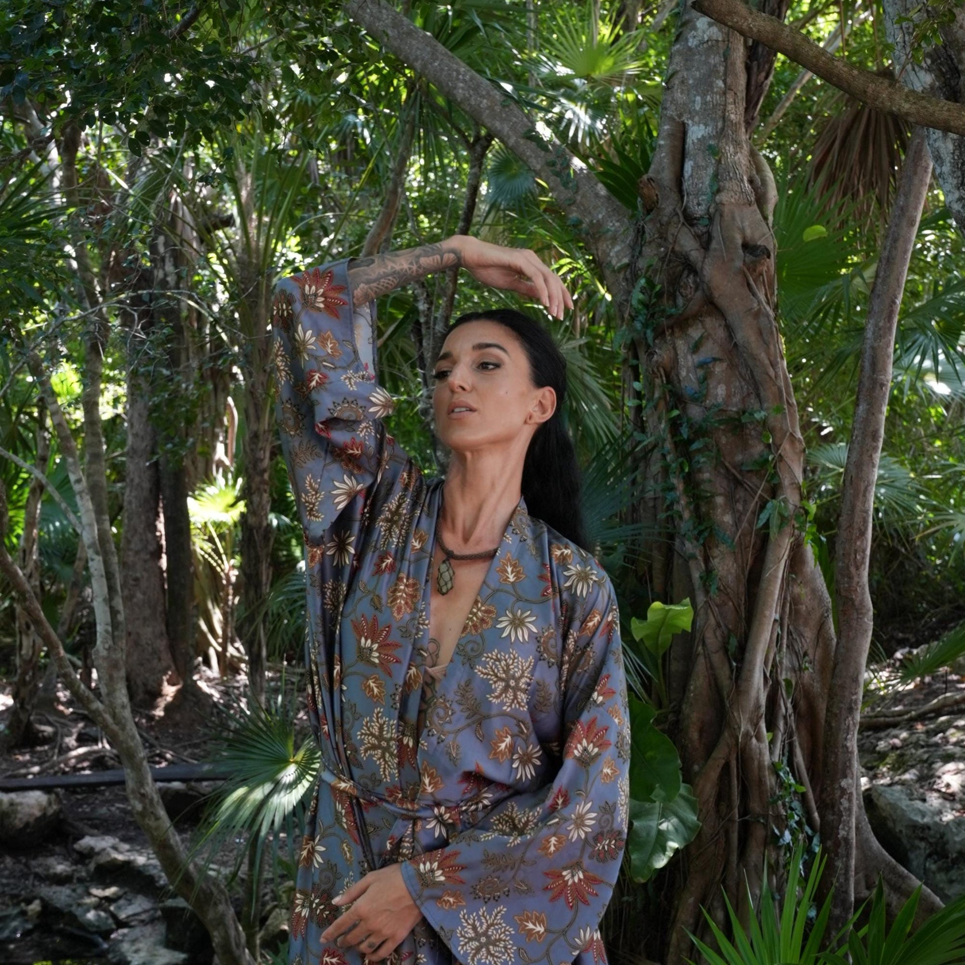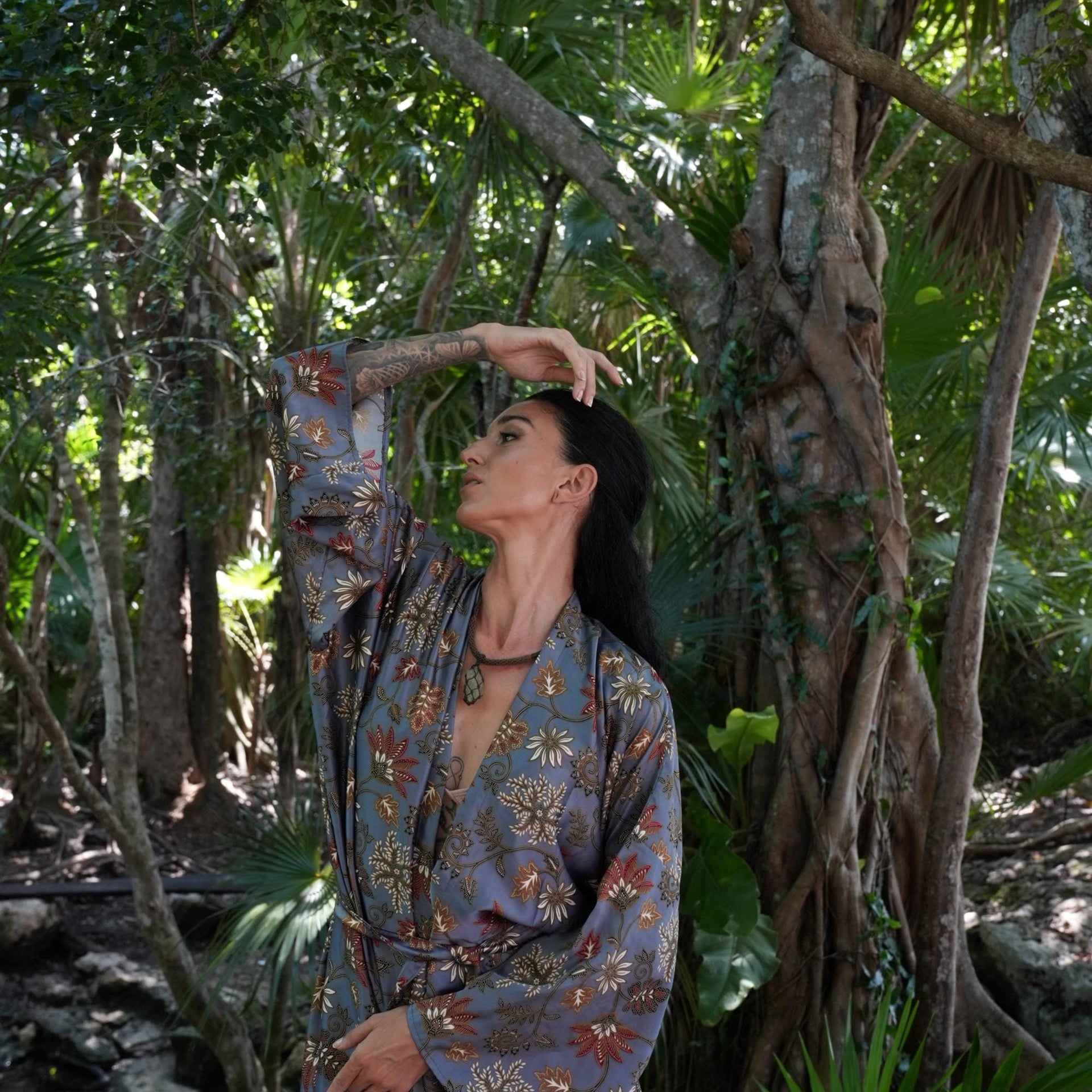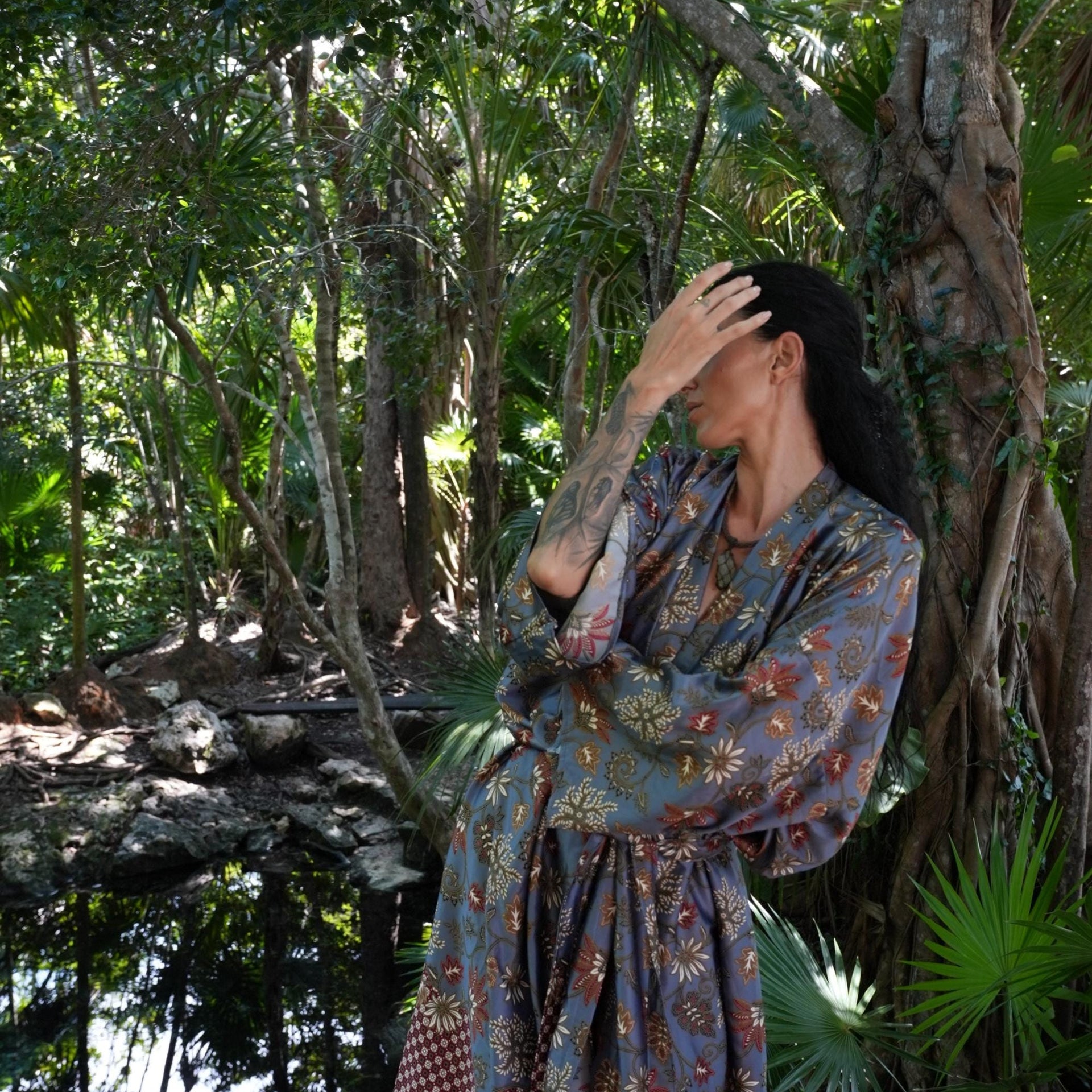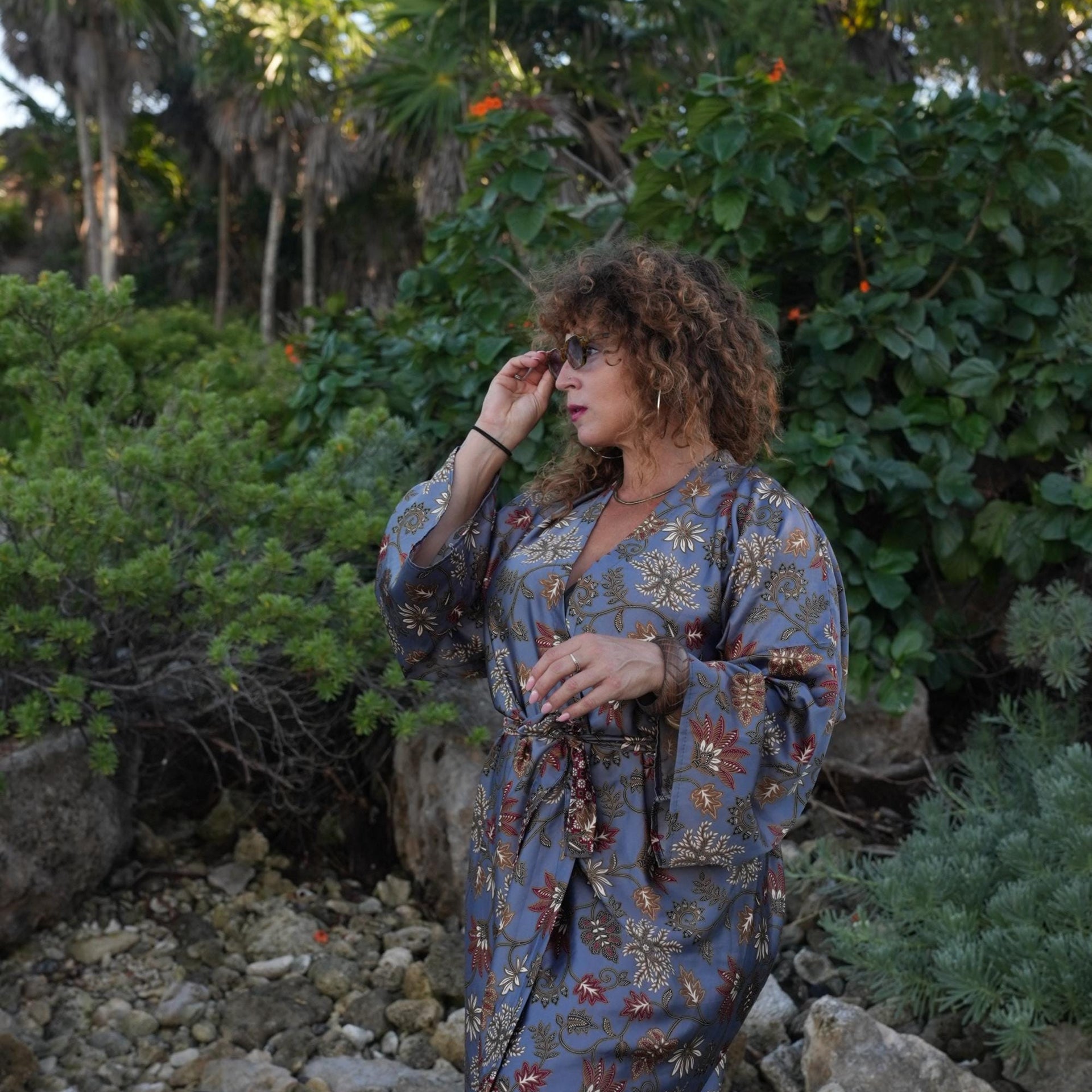 Add a touch of timeless elegance to your wardrobe with the Atlas Blend Bali Batik Kimono Robe Caftan.