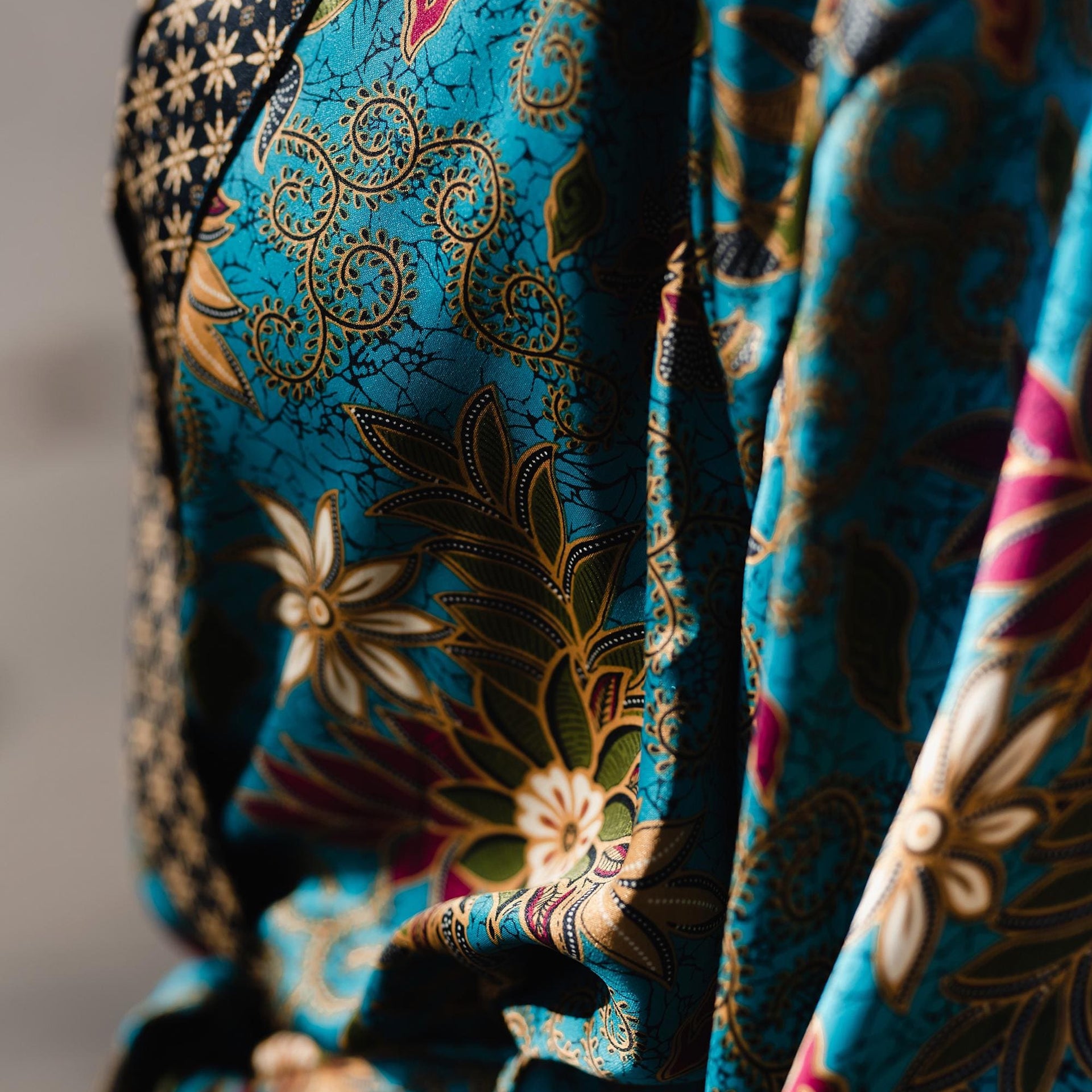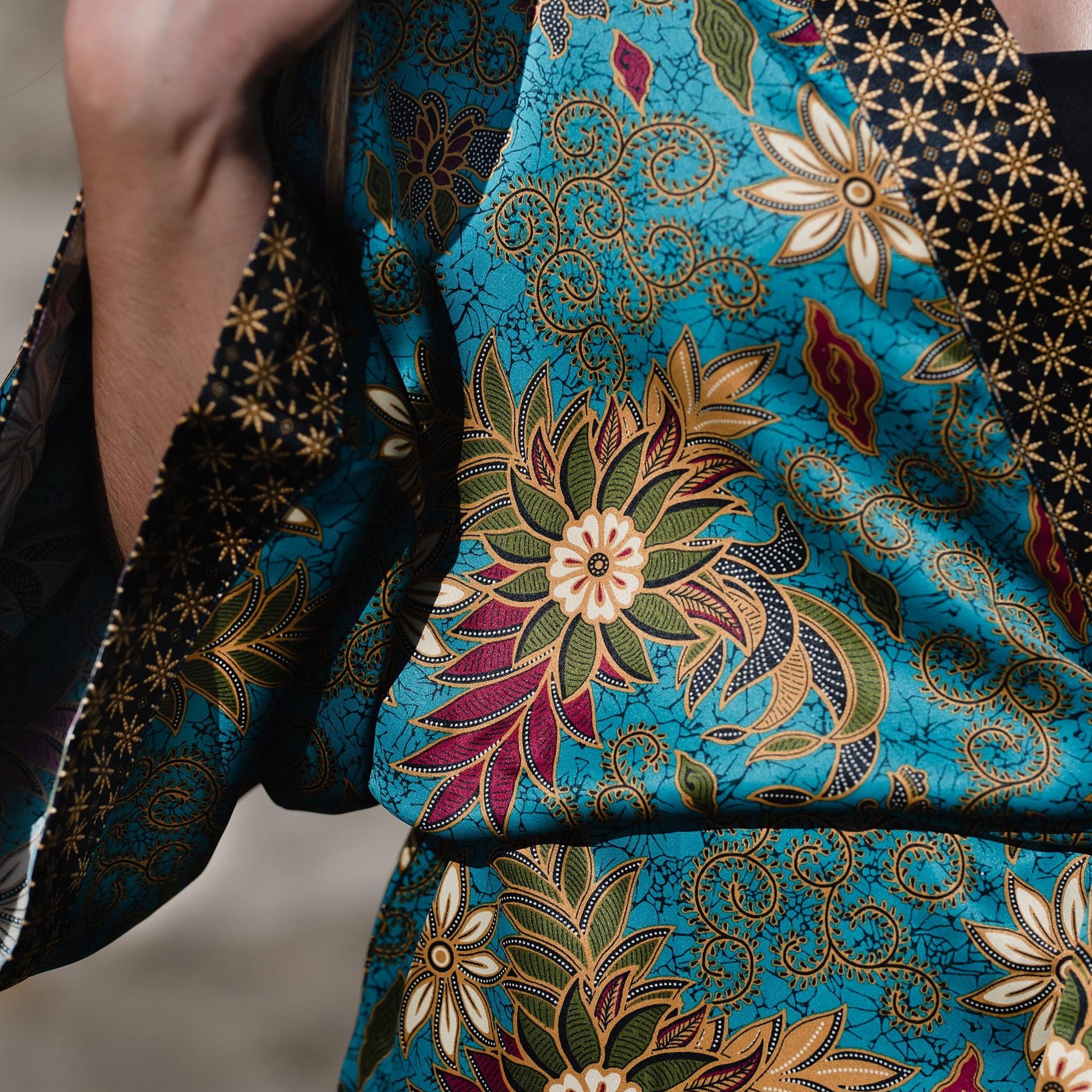 • Artisanal Design: Bold turquoise color featuring Polynesian floral motifs inspired by Bali.