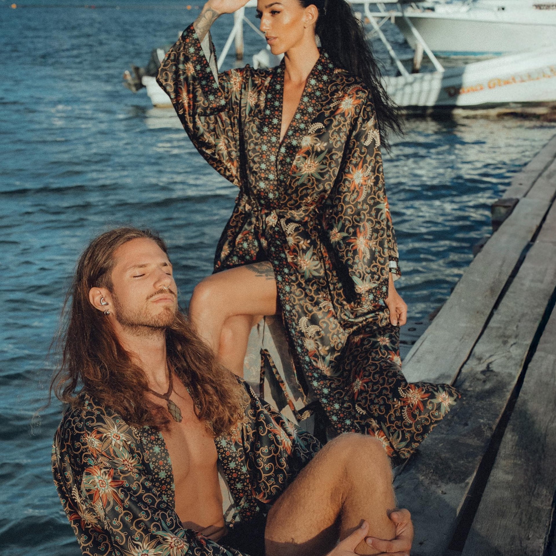 These boho luxury pajamas are the ultimate Valentine’s Day gift, anniversary gift, or wedding morning robe set for couples who love stylish comfort.