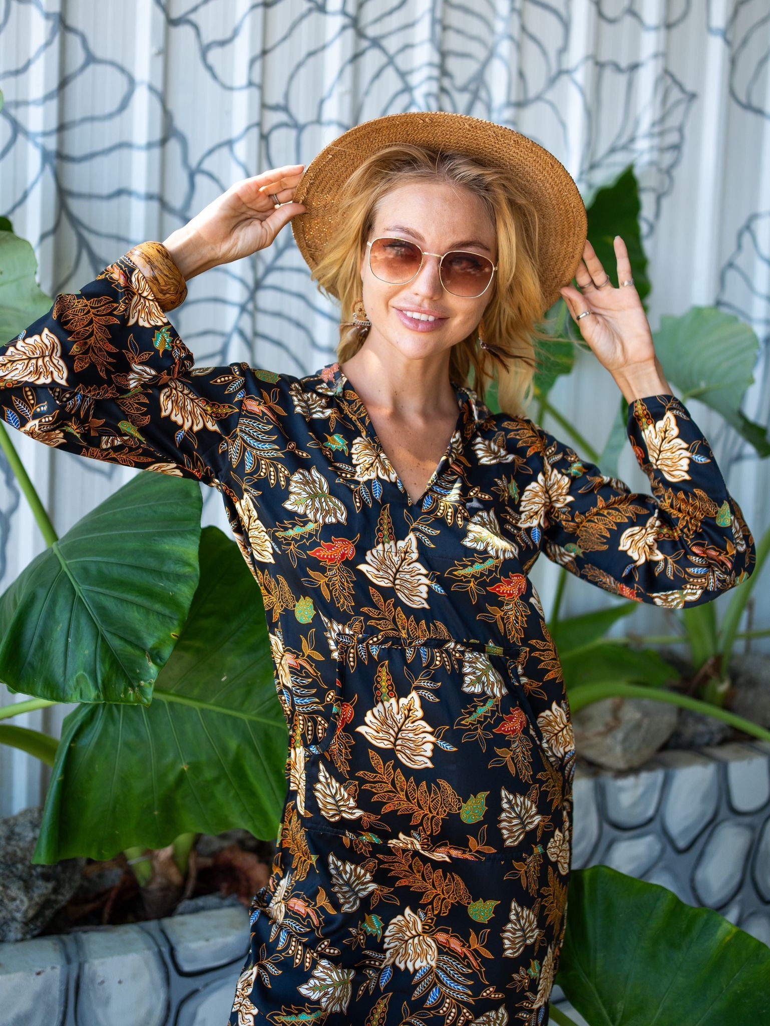 Available in sizes S/M, the Kaftan features a soft, smooth fabric that drapes beautifully for a comfortable fit.