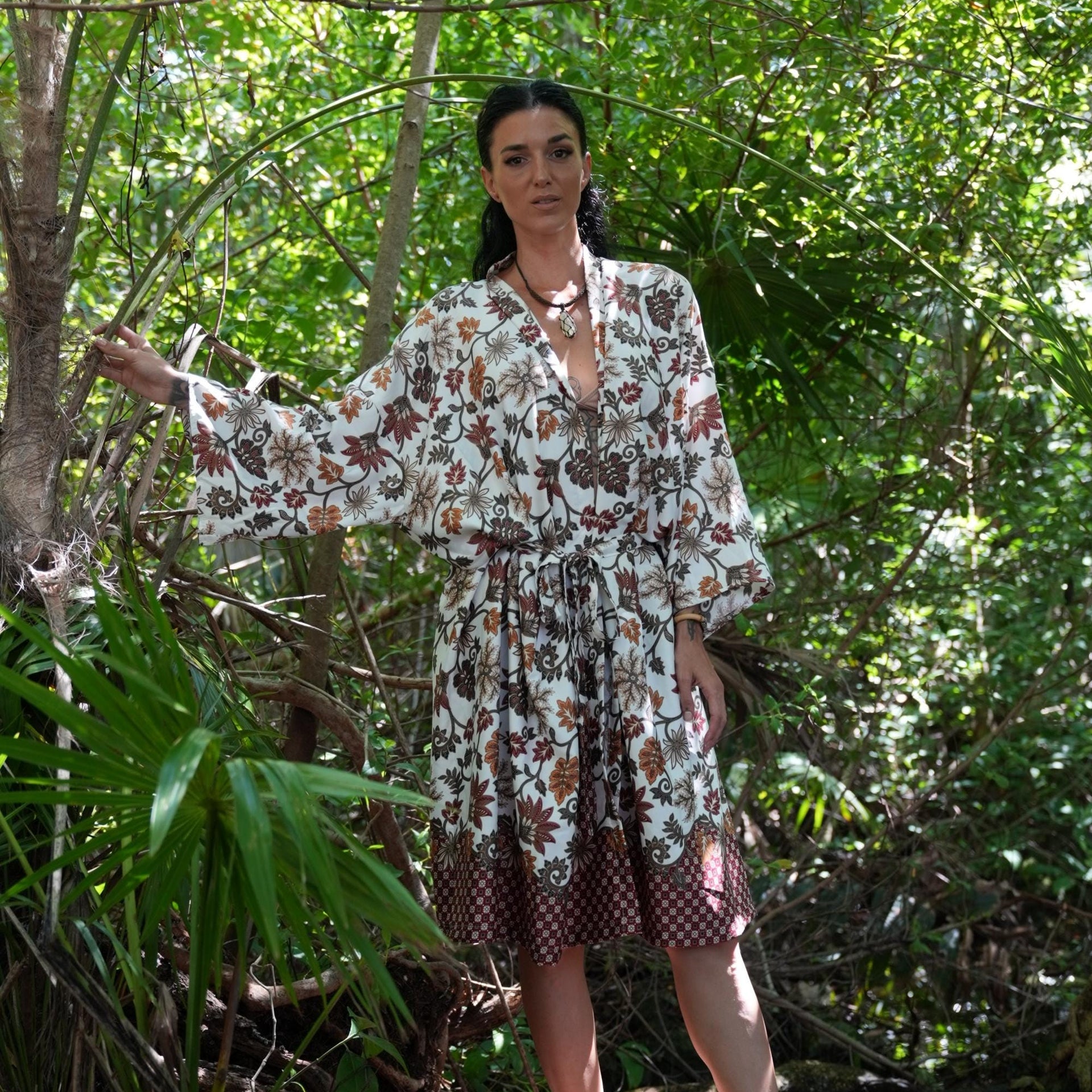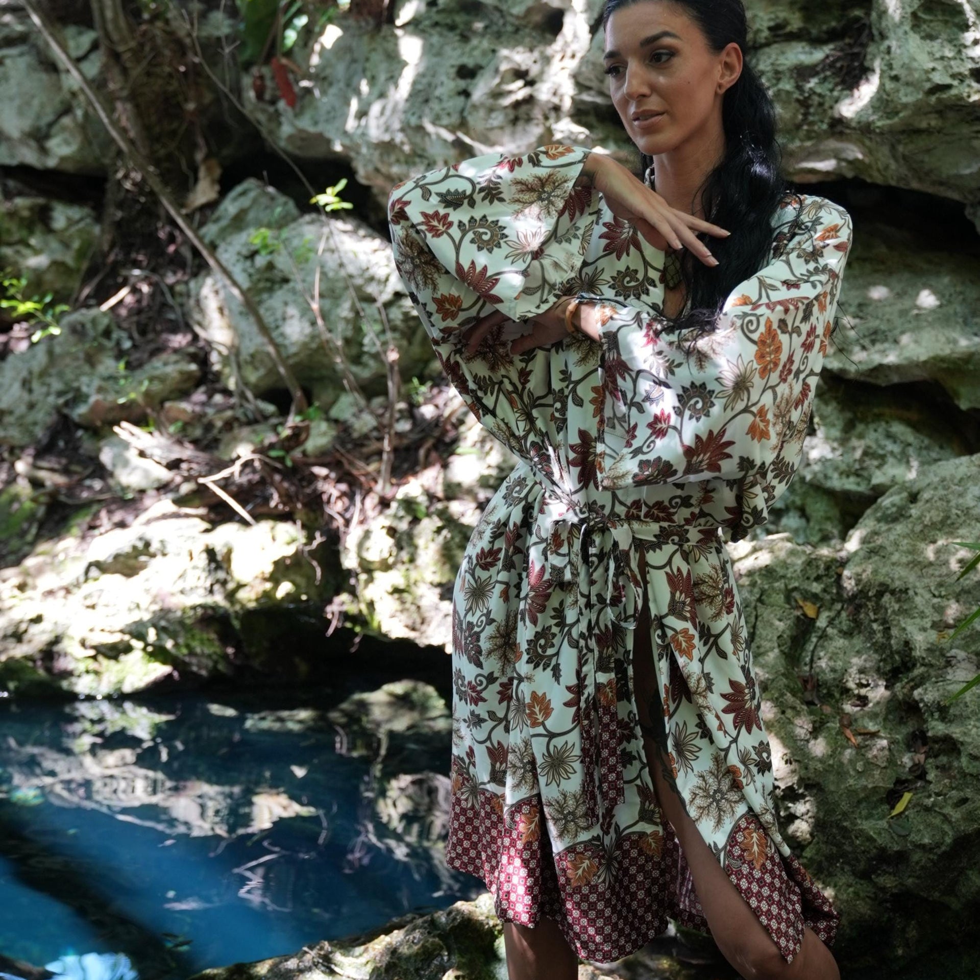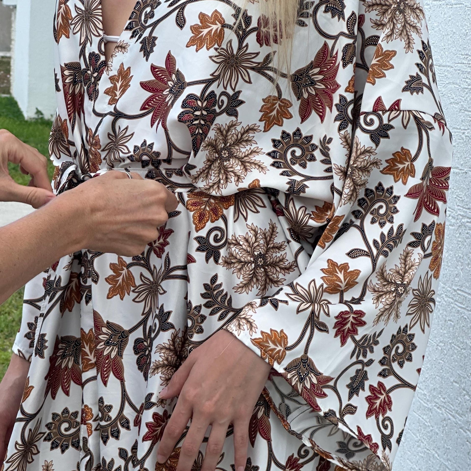 Experience the amazing Romantic Robe luxury of the Boho Fashion kimono robe! It‘s made from a special blend called Atlas POLYESTER Bali Batik from Polynesia.