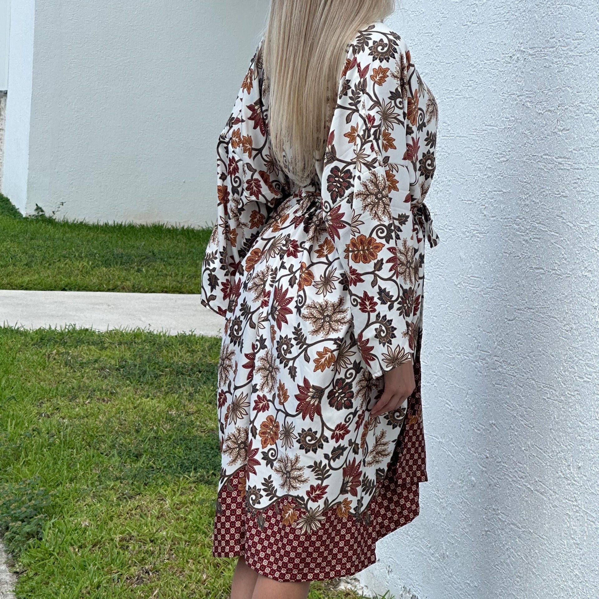 Step into ultimate comfort and style with this short Bali Atlas satin POLYESTER kimono robe. Festival clothing. Gift for Women