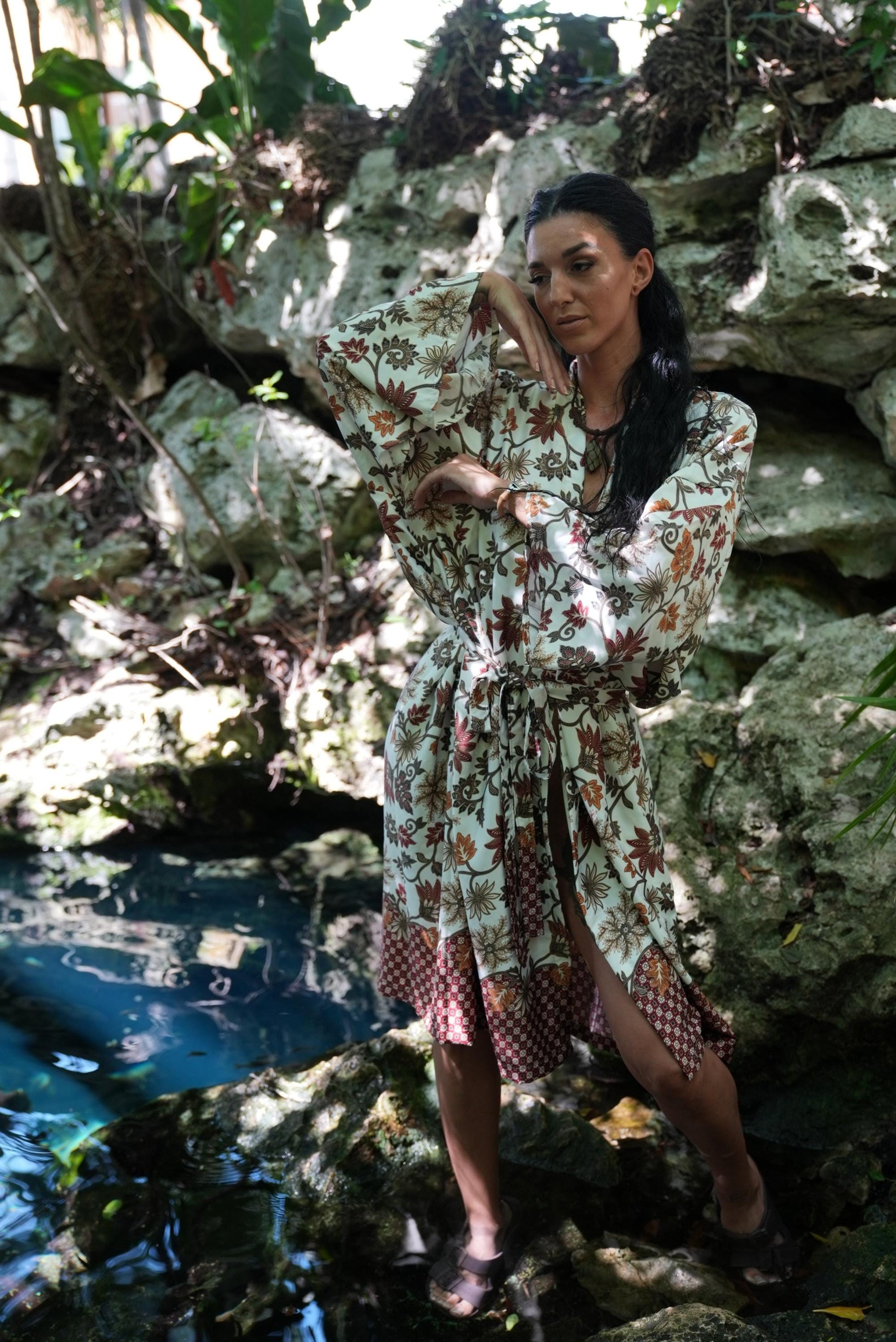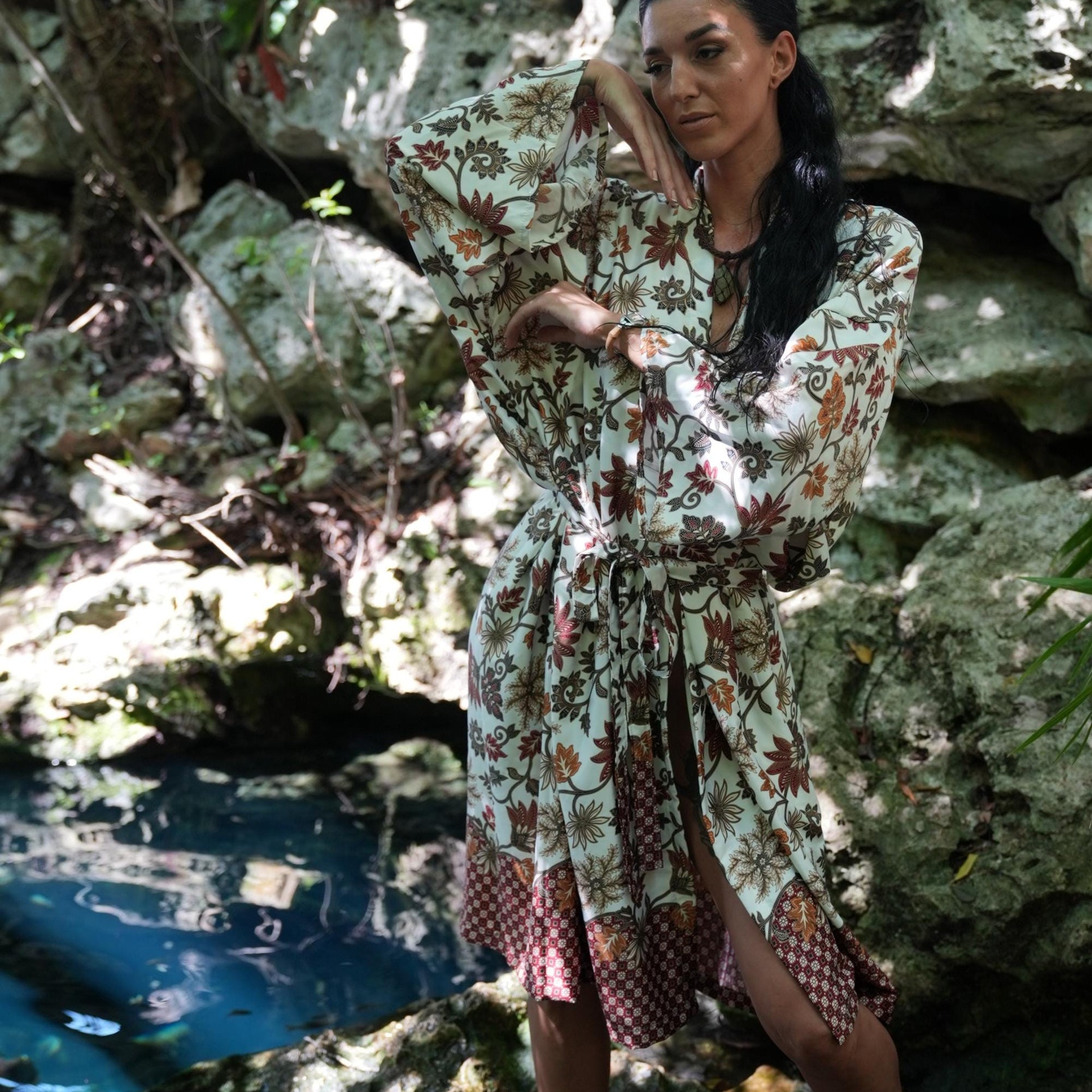 Add a touch of timeless elegance to your wardrobe with the Atlas Blend Bali Batik kimono robe caftan. Every detail is carefully crafted, taking inspiration from Japanese and Balinese yoga culture.