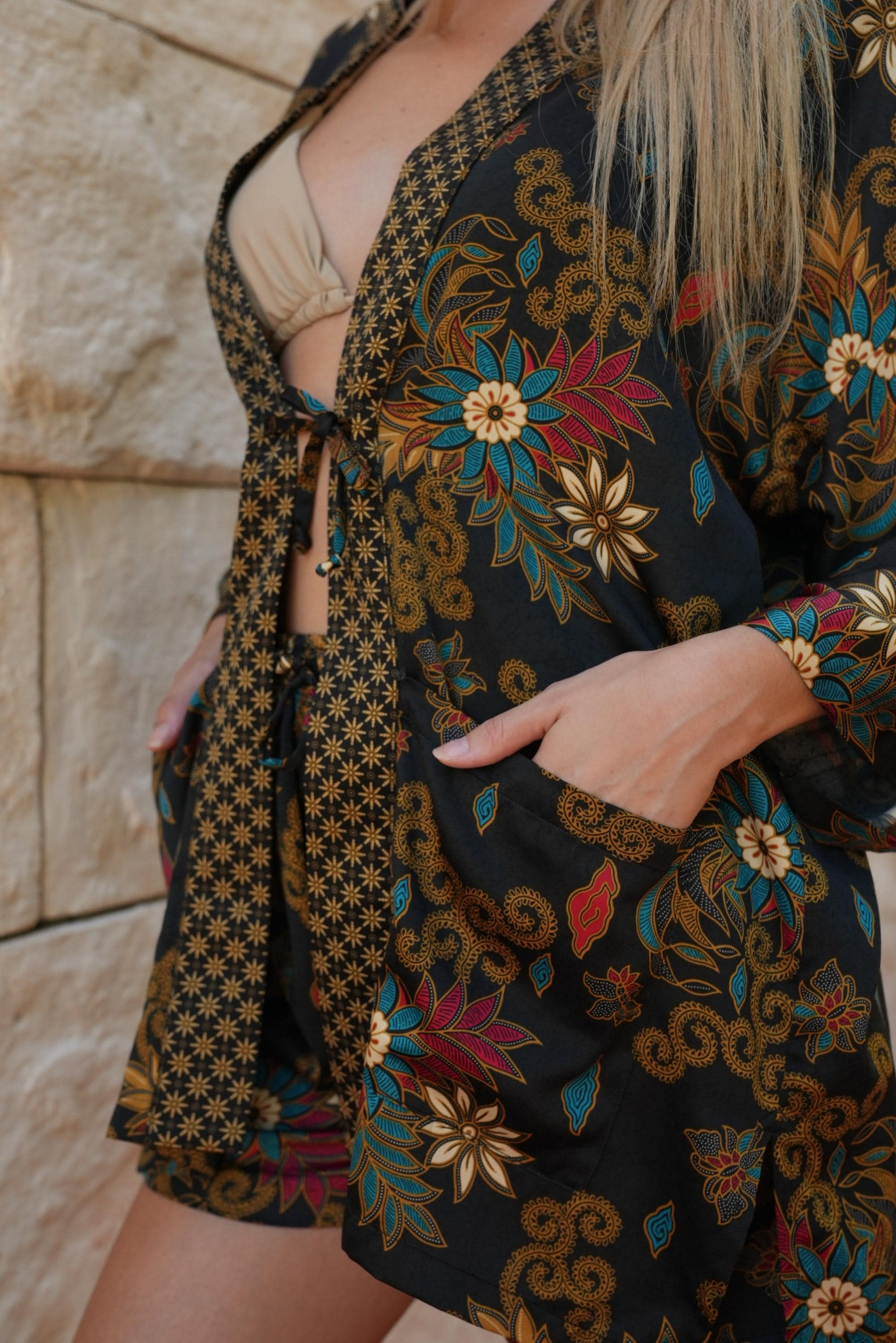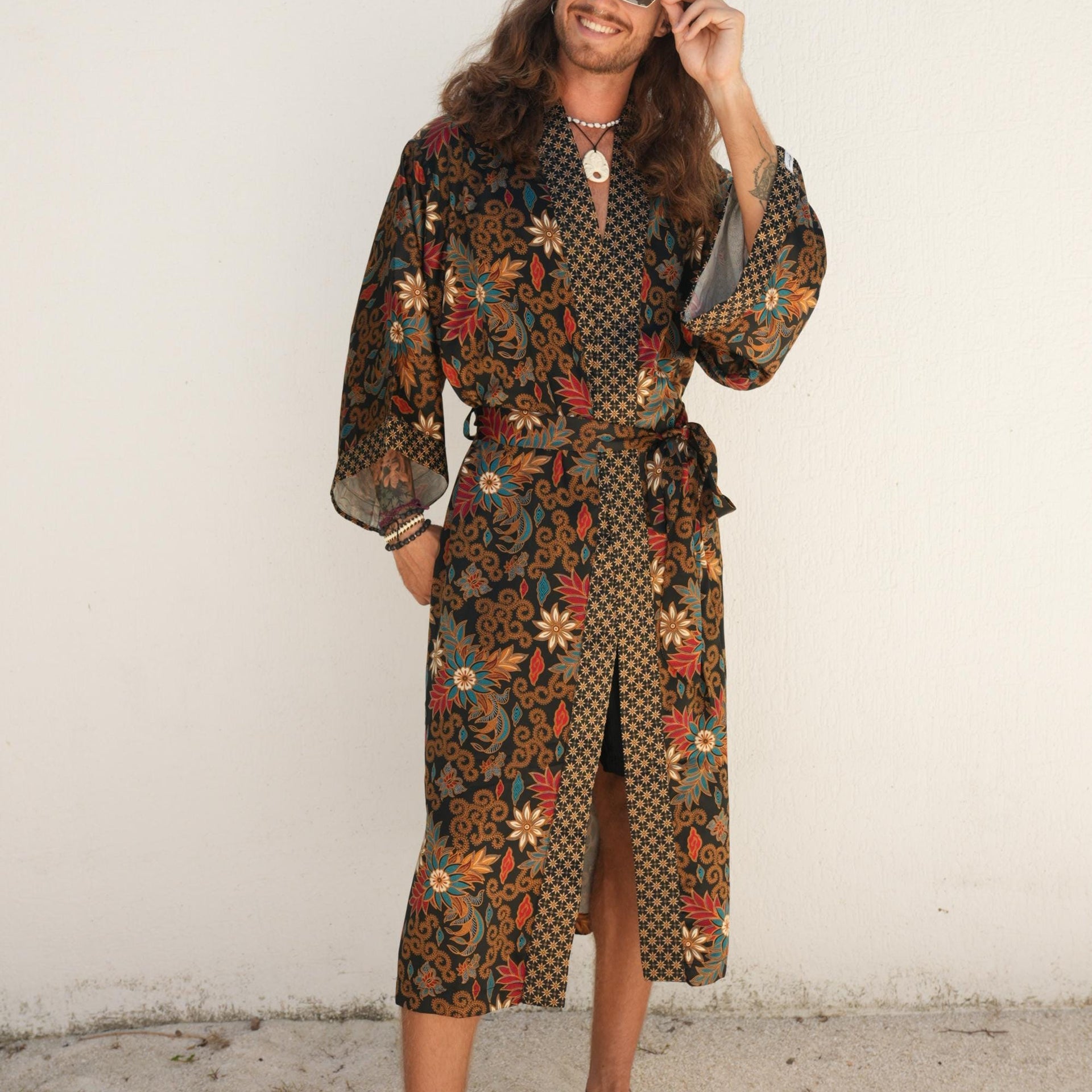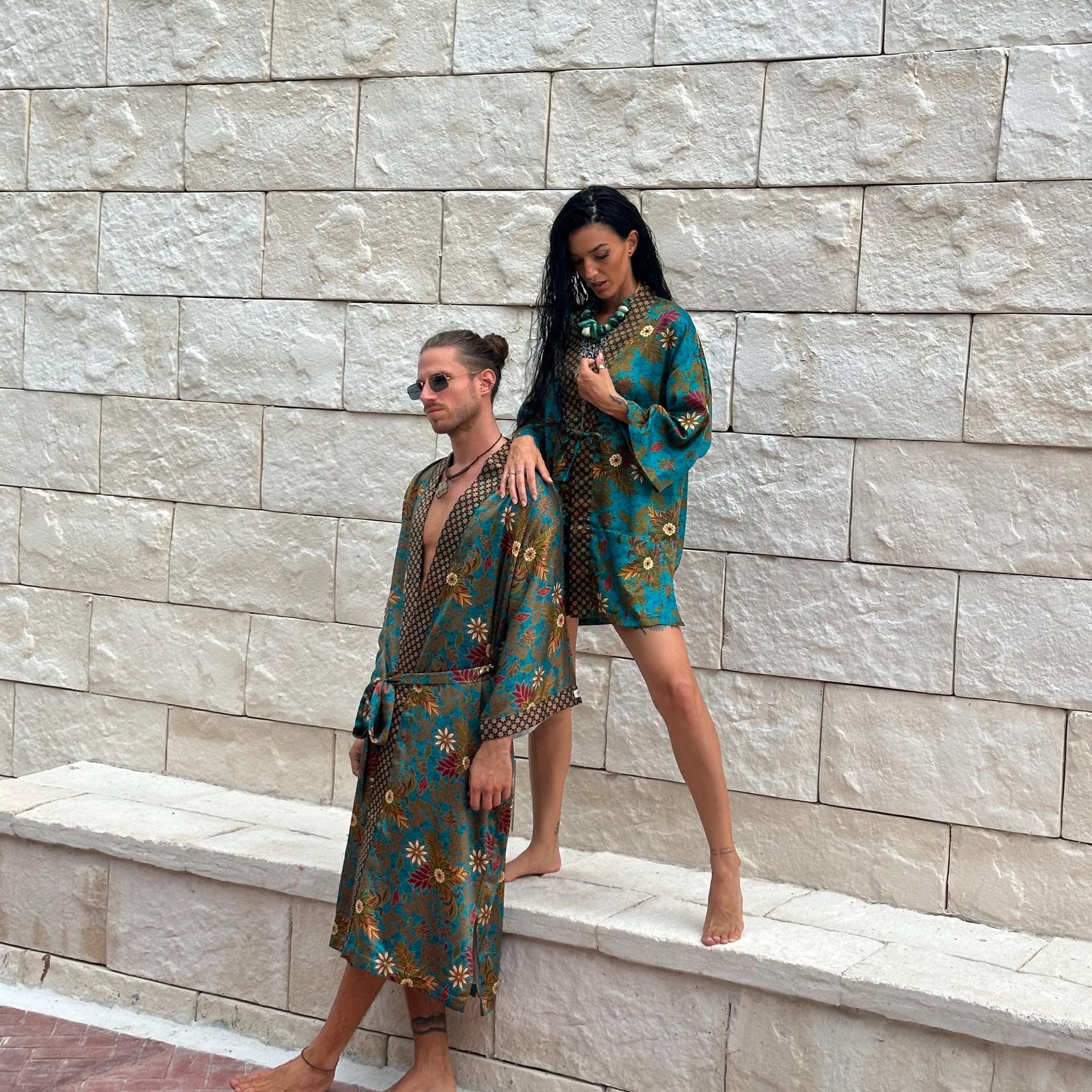 Luxury Pajamas for Resort , Boho Bali silk bland of 2 kimons, Robe for couples - Festival kimono robe -Gift for Valentines Day.