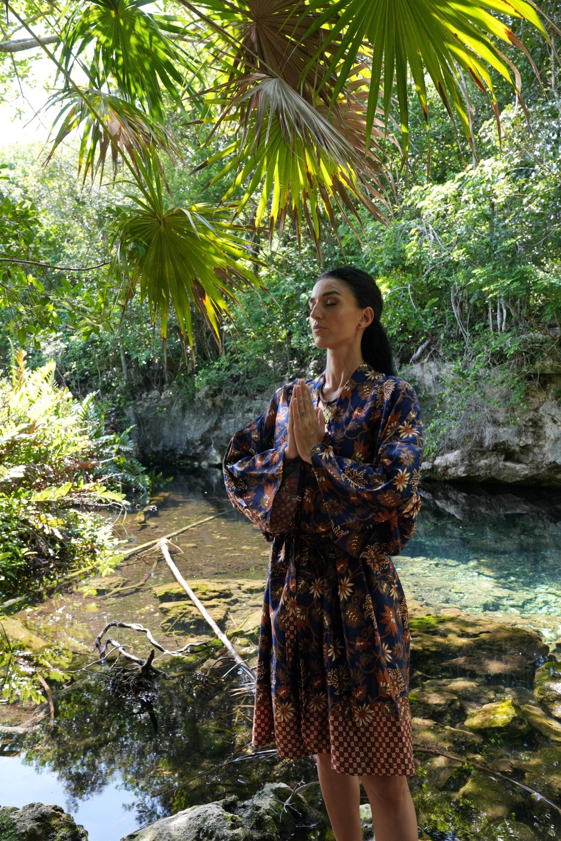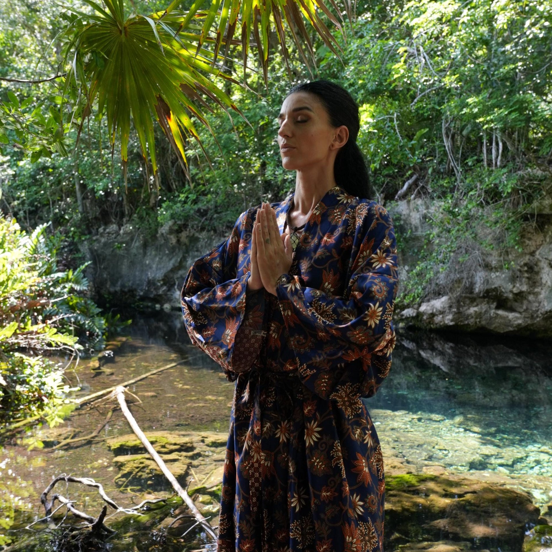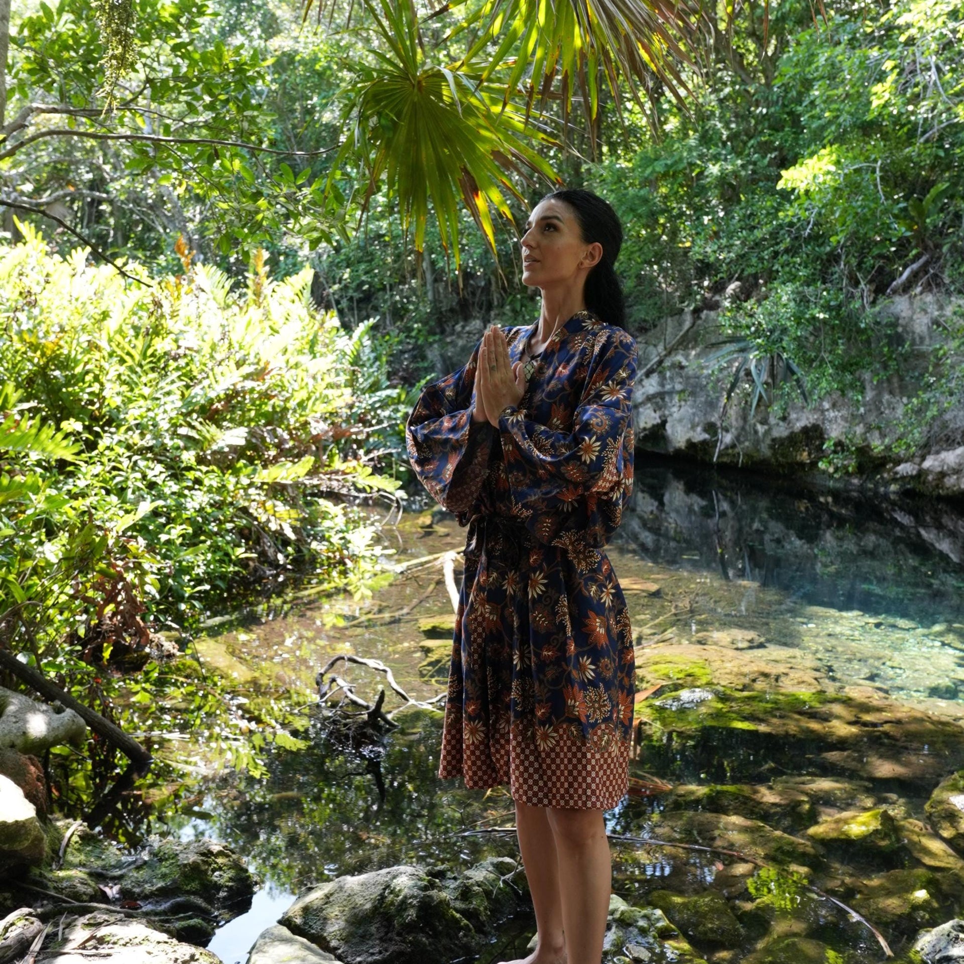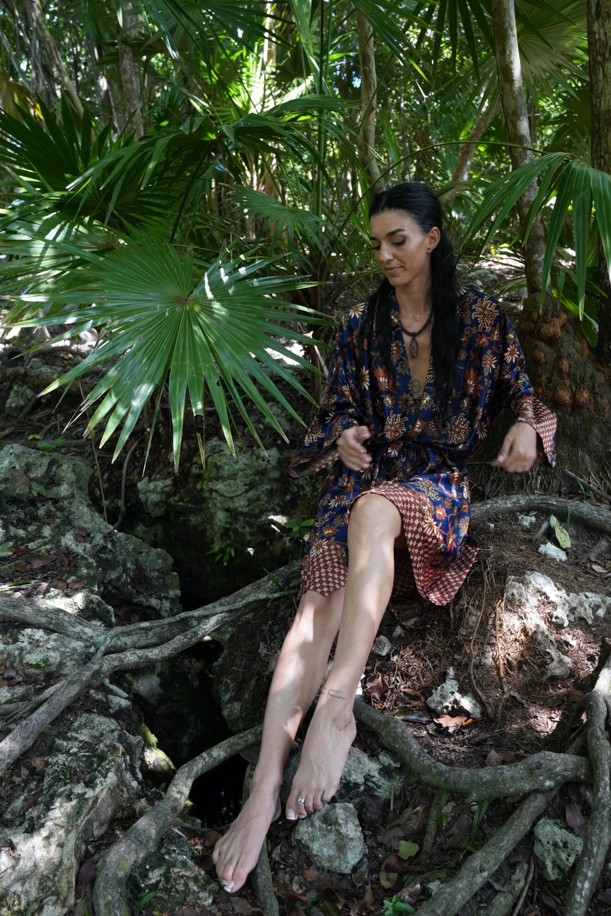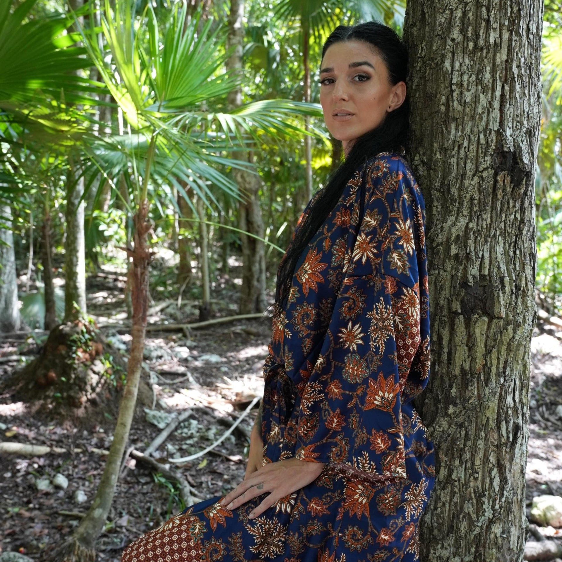 Add a touch of timeless elegance to your wardrobe with the Atlas Blend Bali Batik kimono robe caftan. Every detail is carefully crafted, taking inspiration from Japanese and Balinese yoga culture.