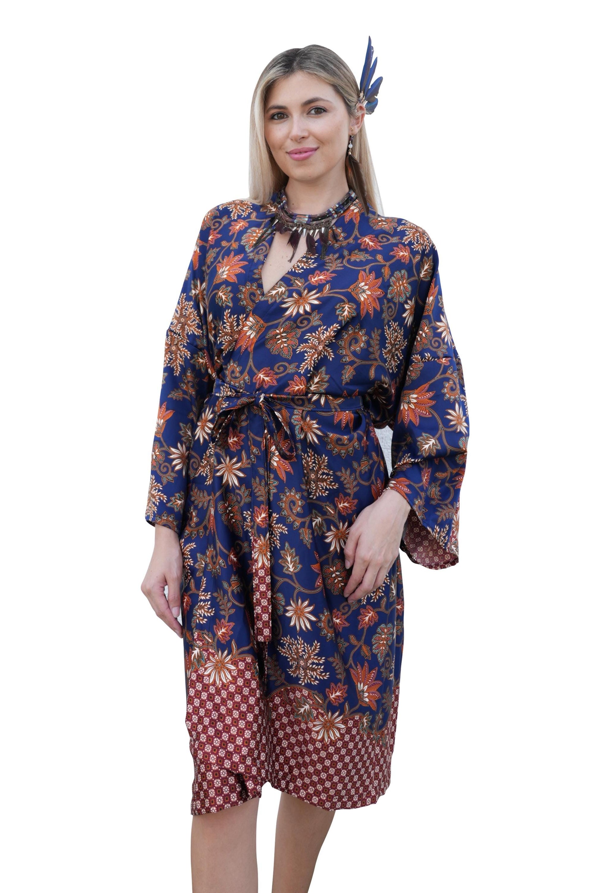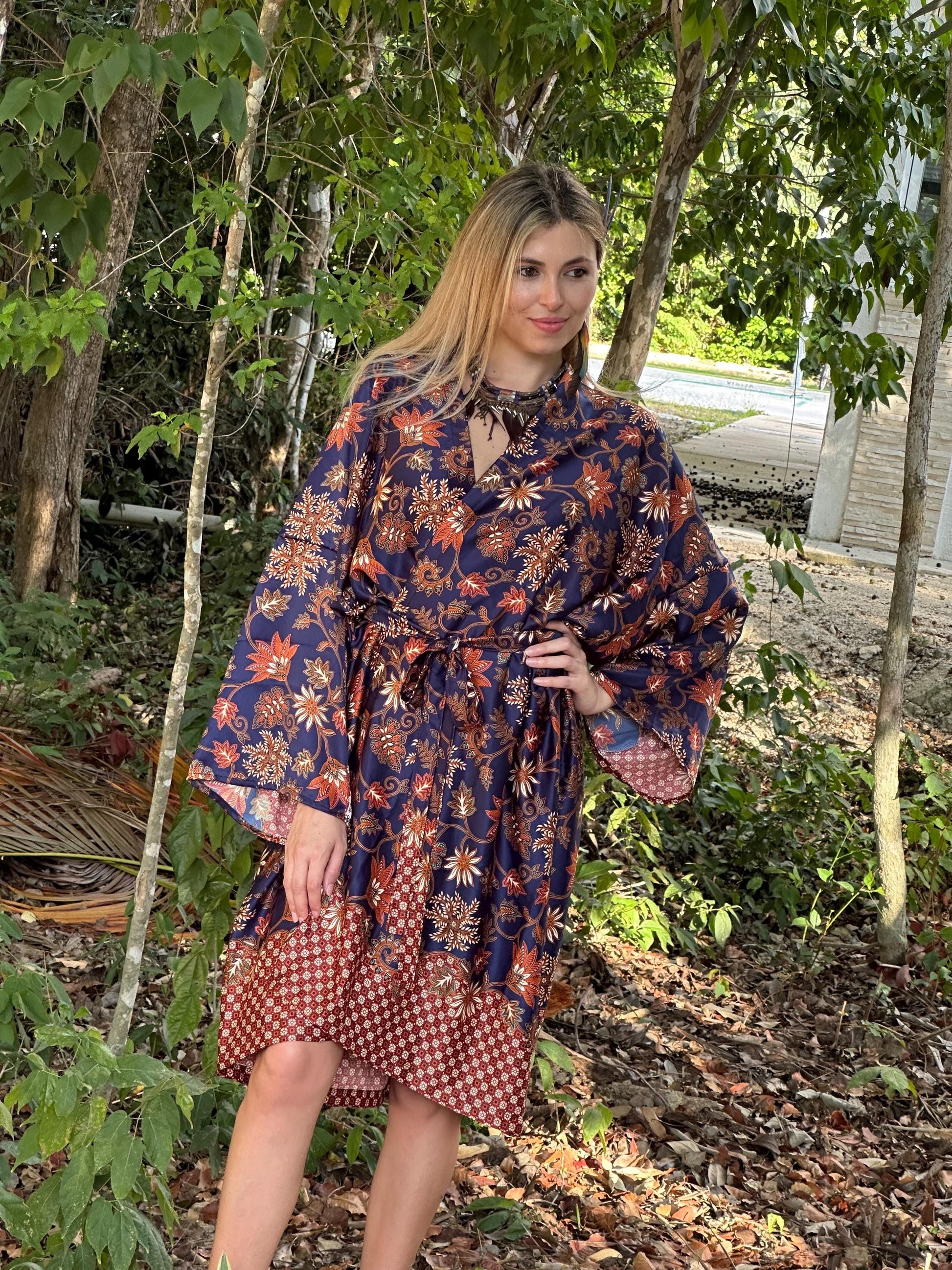 Step into ultimate comfort and style with this short Bali Atlas satin POLYESTER kimono robe. Festival clothing. Gift for Women