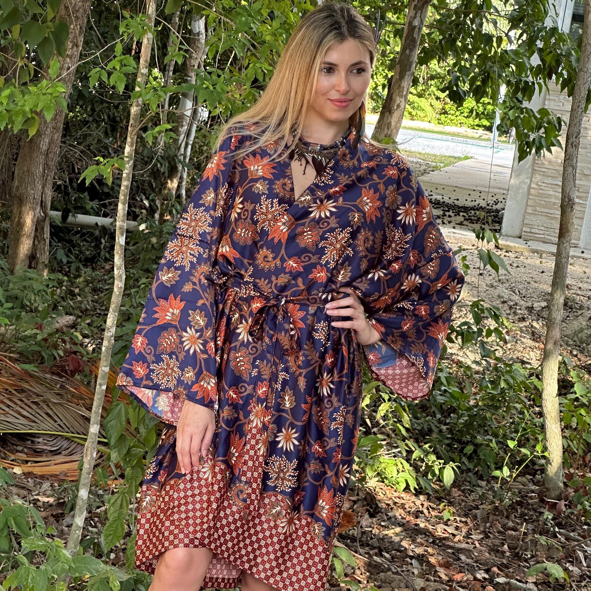 Experience the amazing Romantic Robe luxury of the Boho Fashion kimono robe! It‘s made from a special blend called Atlas POLYESTER Bali Batik from Polynesia.