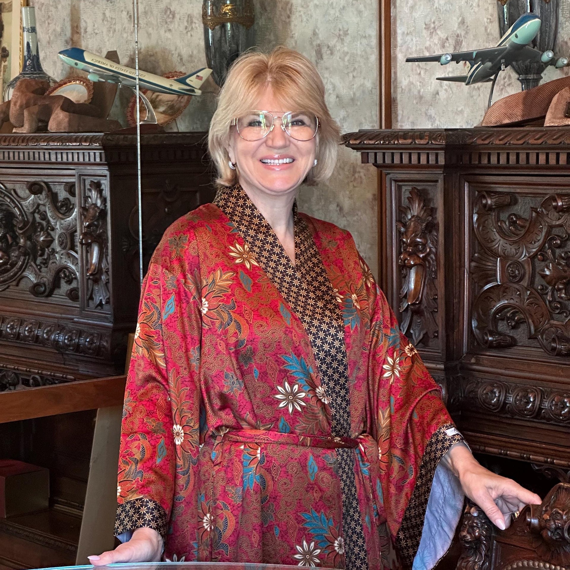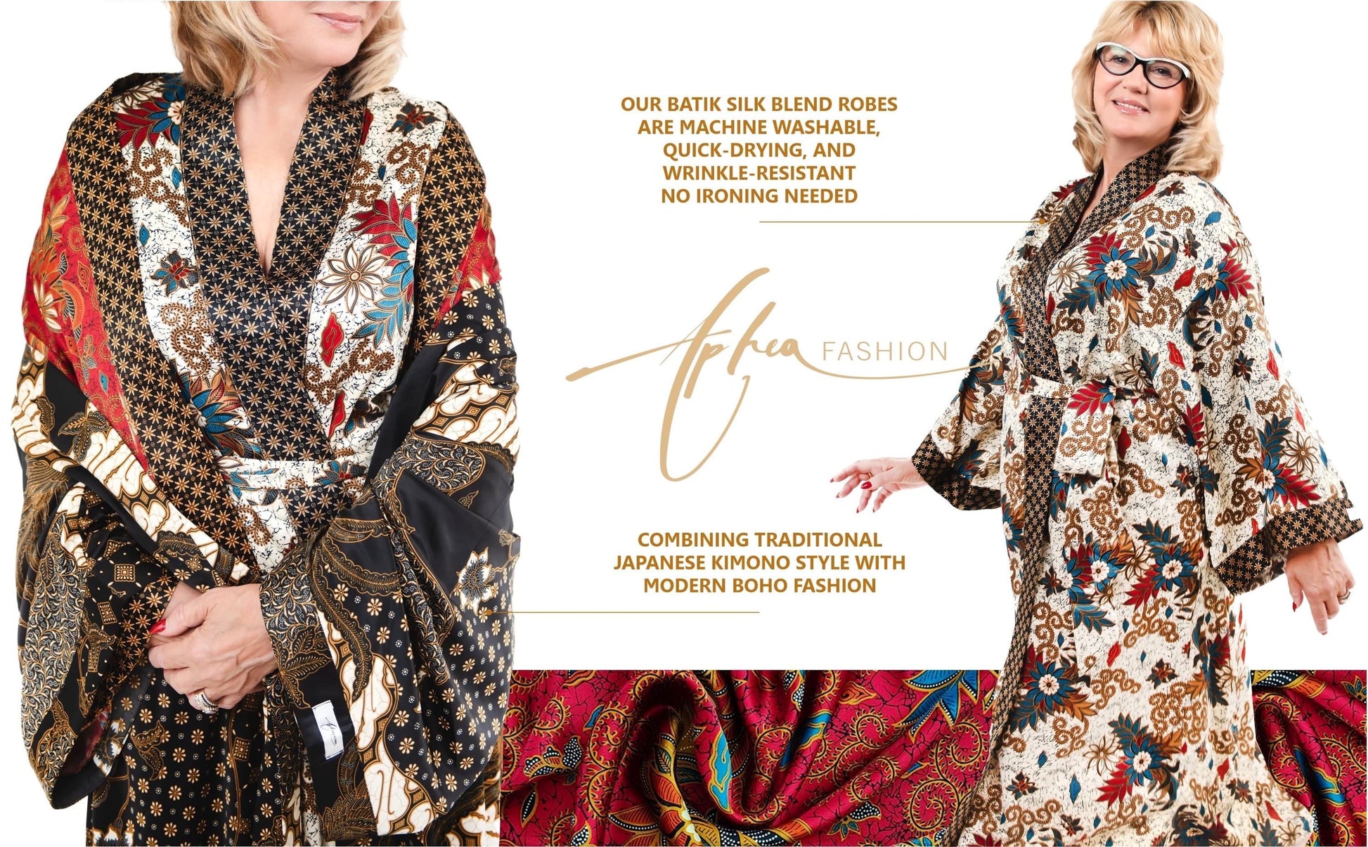 Wrap yourself in luxury with our handcrafted silk-blend kimono robe, inspired by the timeless beauty of Balinese batik. Each piece is made in limited batches using traditional techniques, blending deep red tones with vibrant florals and golden accents.
