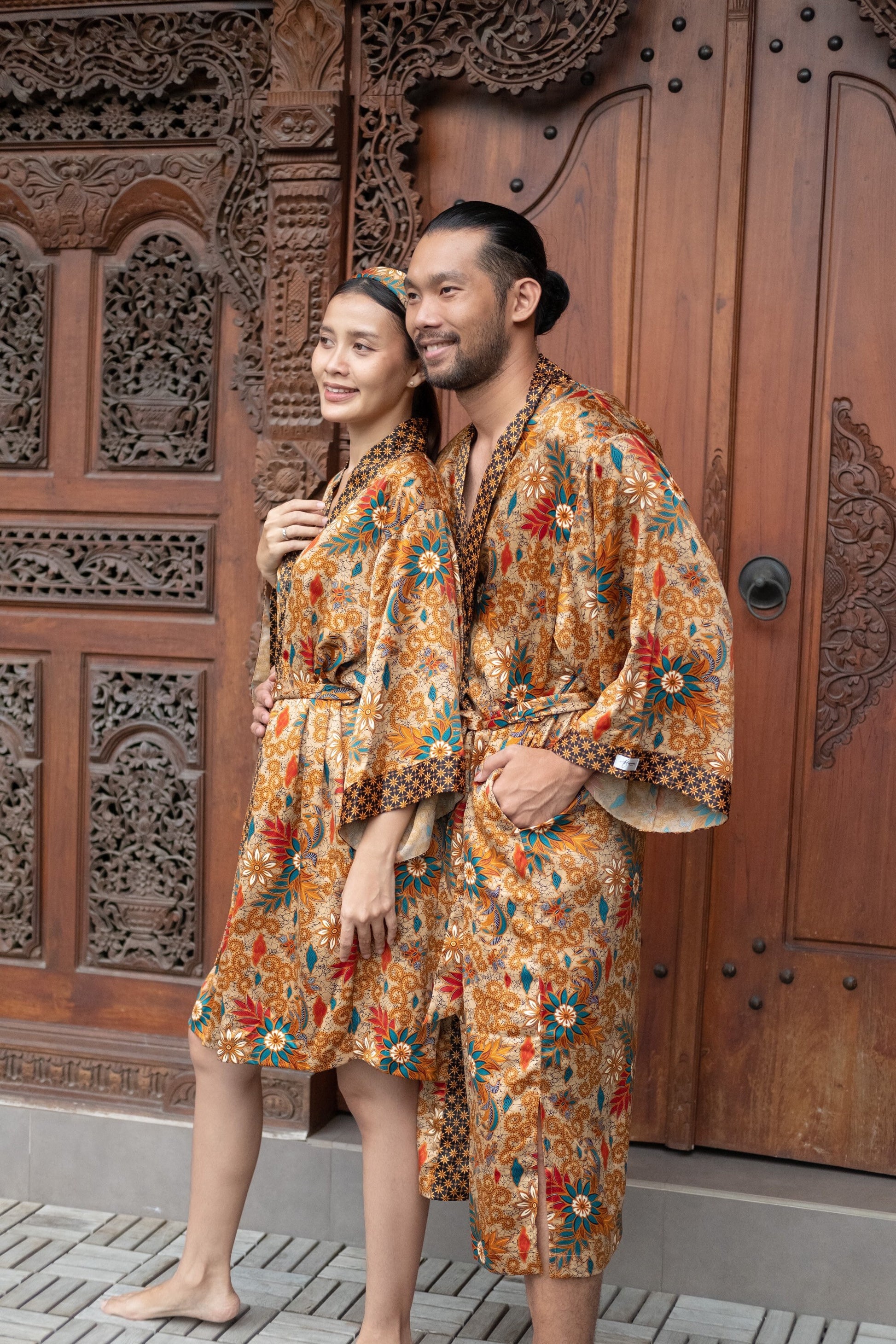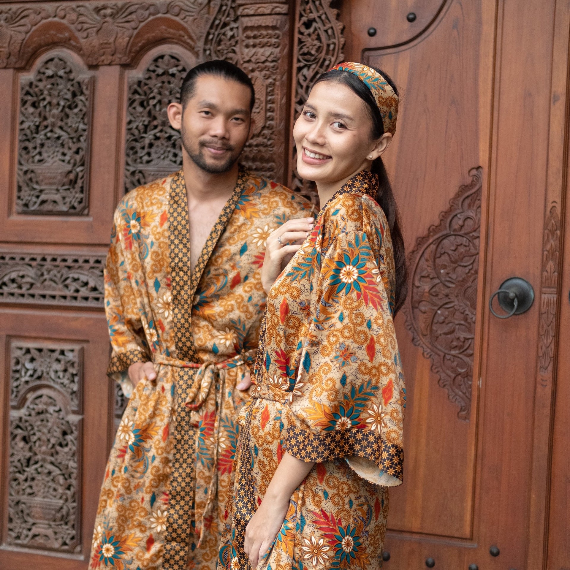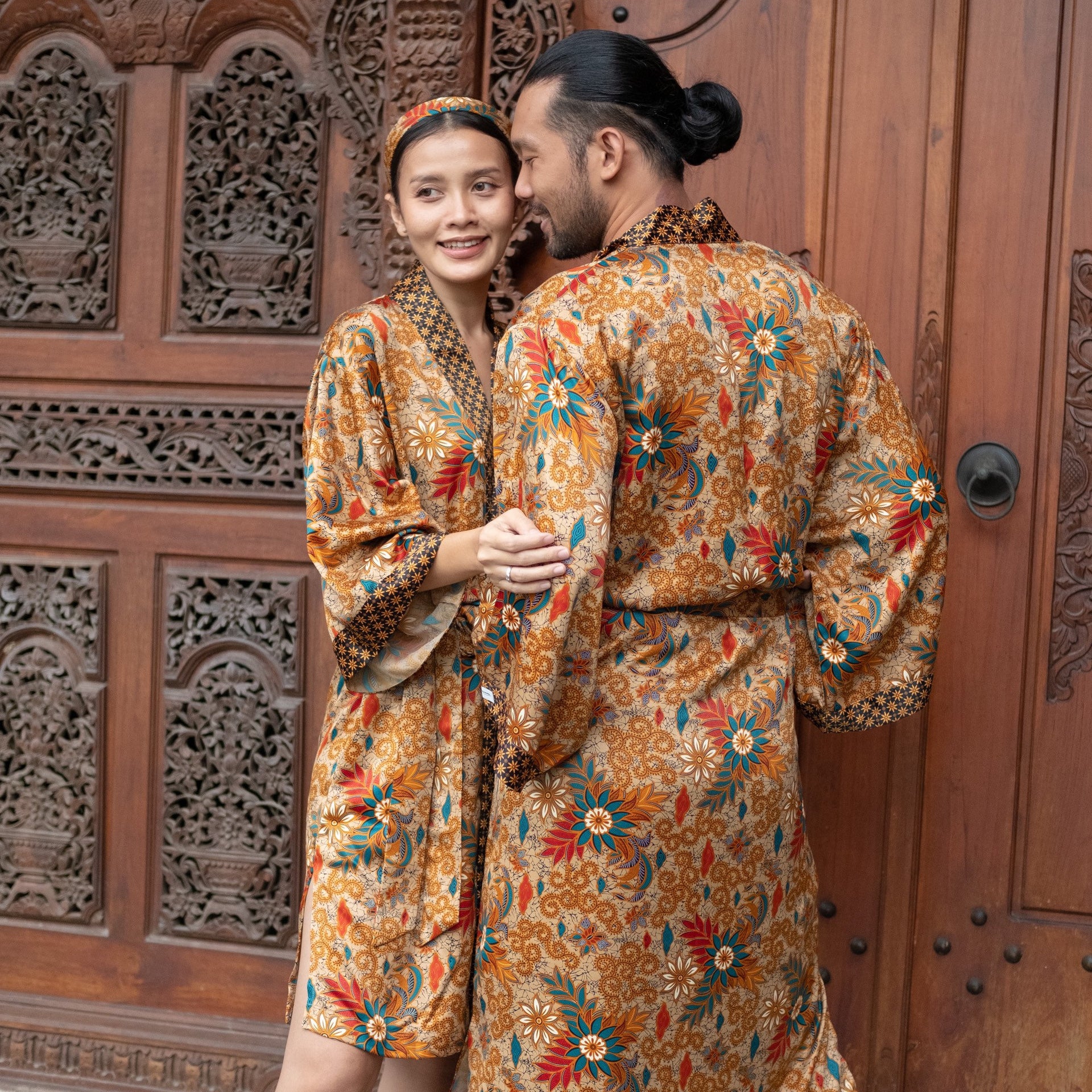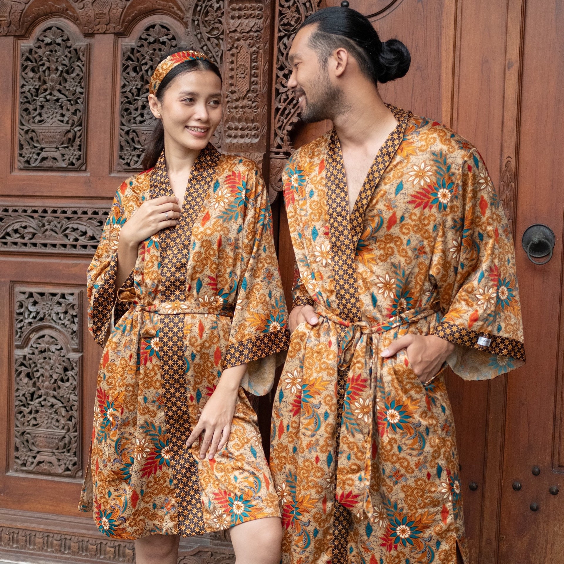 The gift Silk Satin blend Atlas Boho Bali Batik Kimono silk robe kimono adds some romance to your life with one of our Boho robes. You can choose matching patterns for you and your partner to wear as you lounge in luxury together.