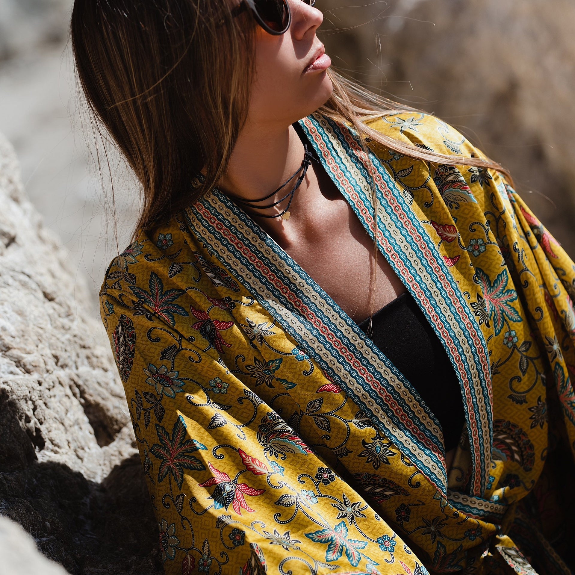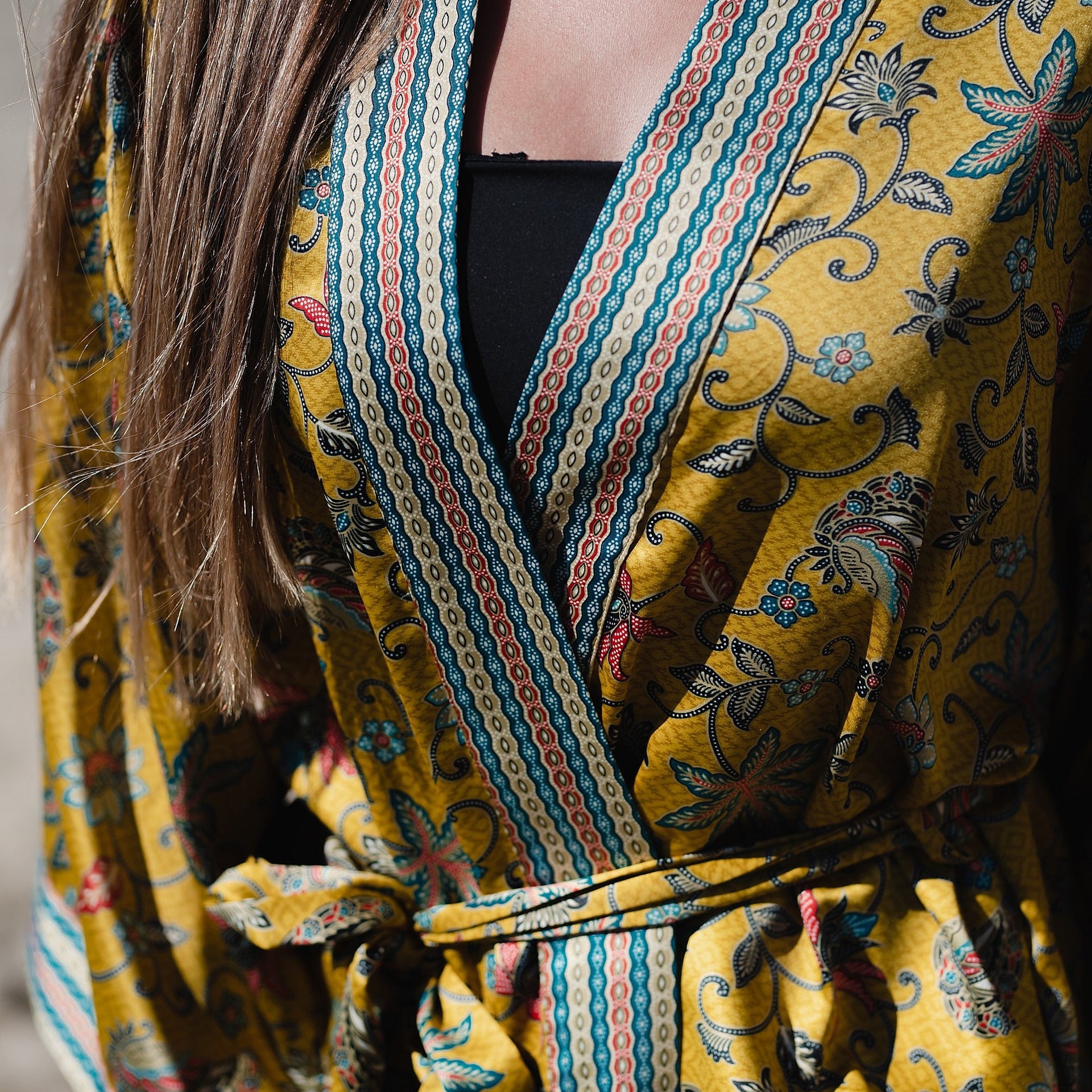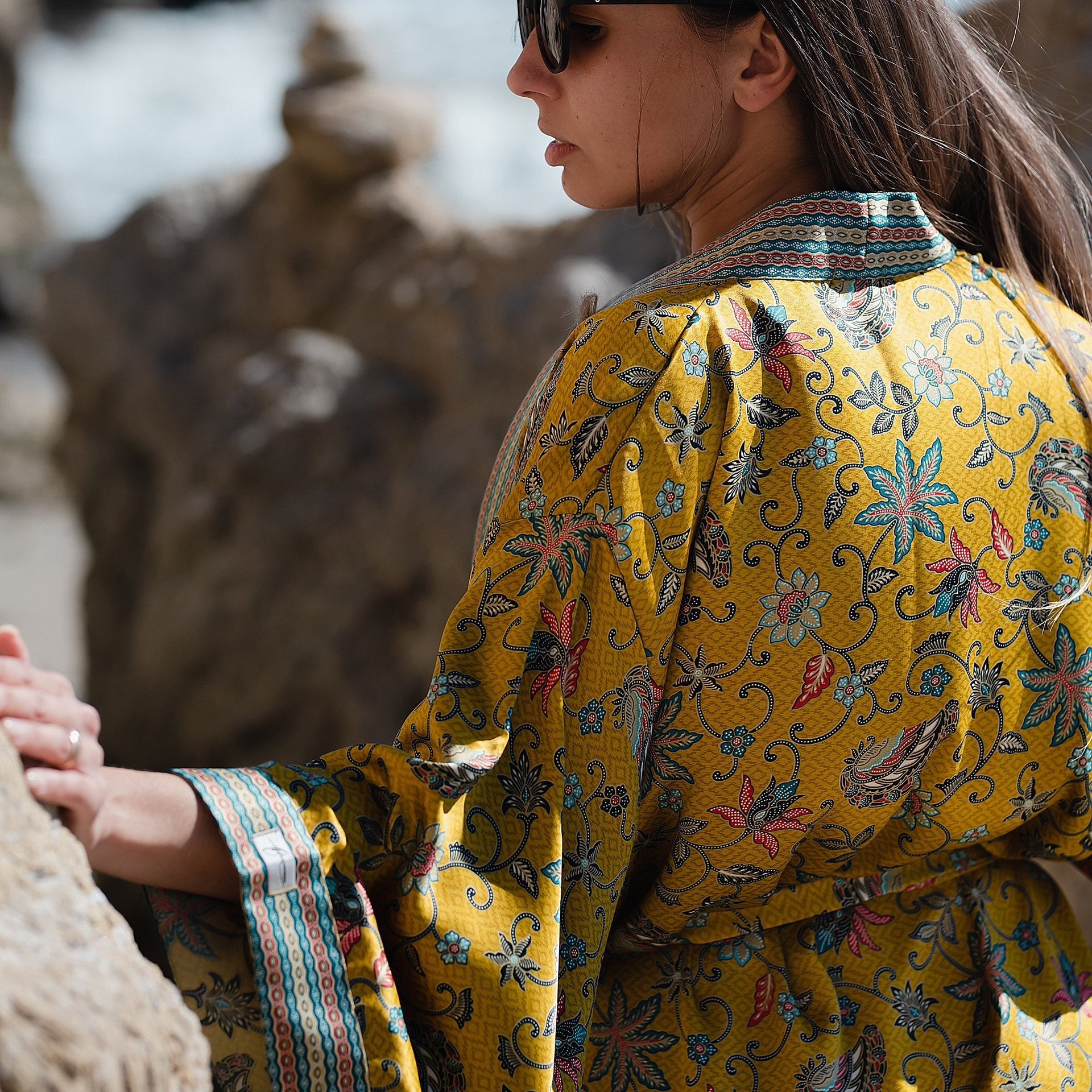 If you have been to Bali or Oceania - Polynesia, this is kaftan kimono robe will bring good memories about a unique trip.