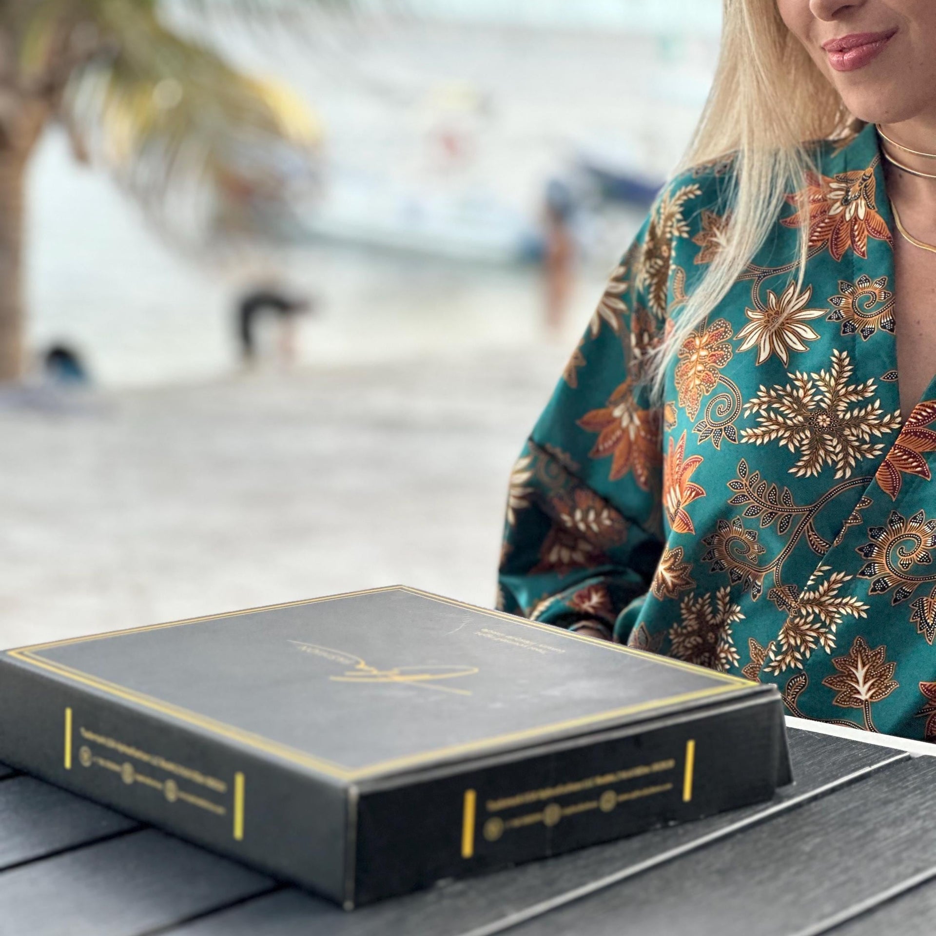 Silk Baige Kimono Robe Set: Polynesian Batik, Gift-Ready
