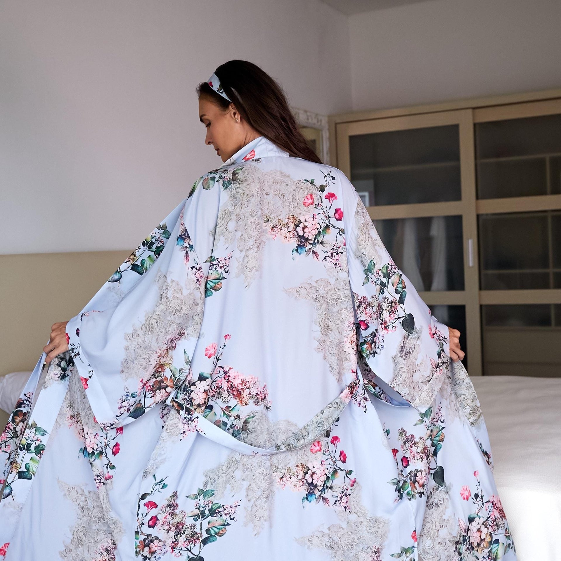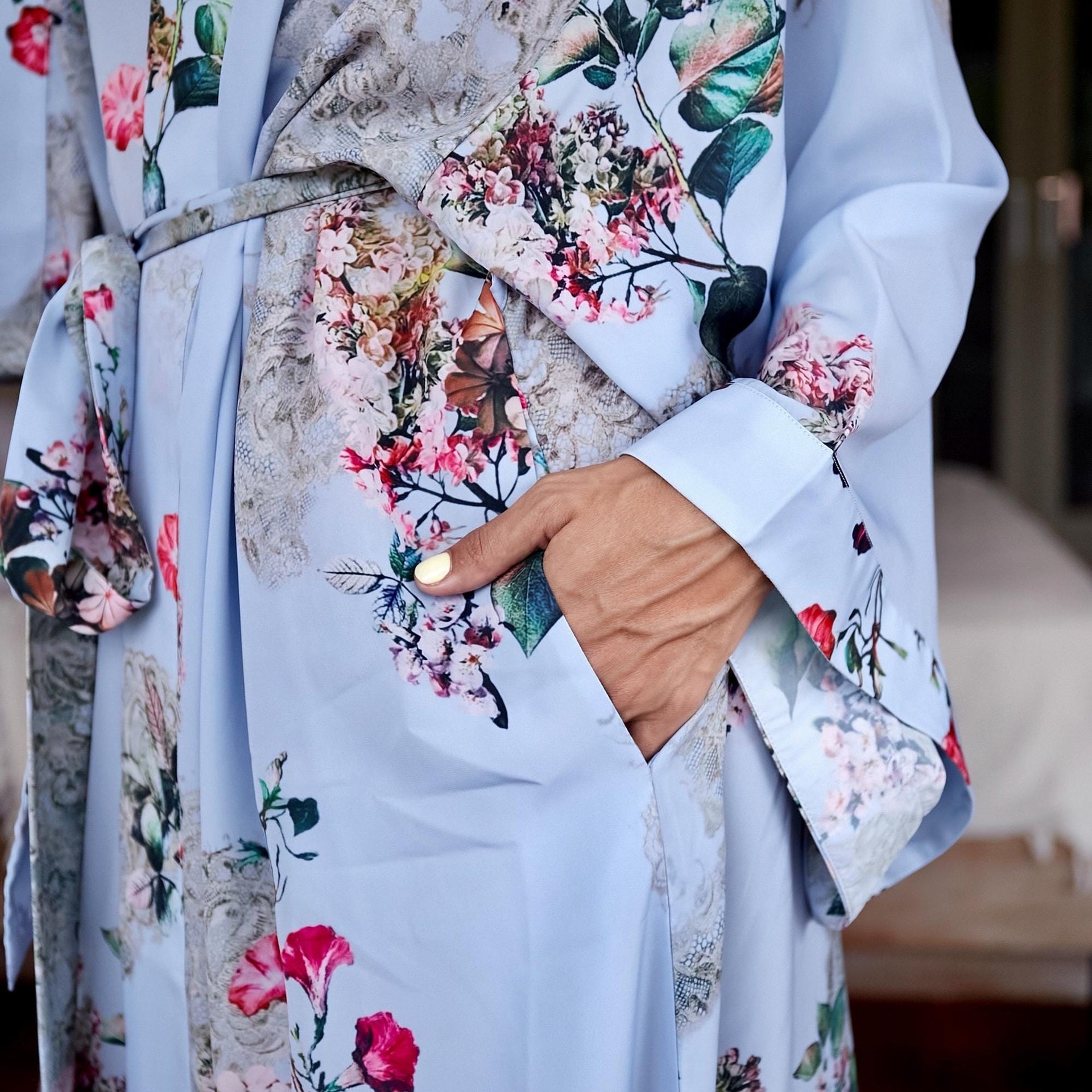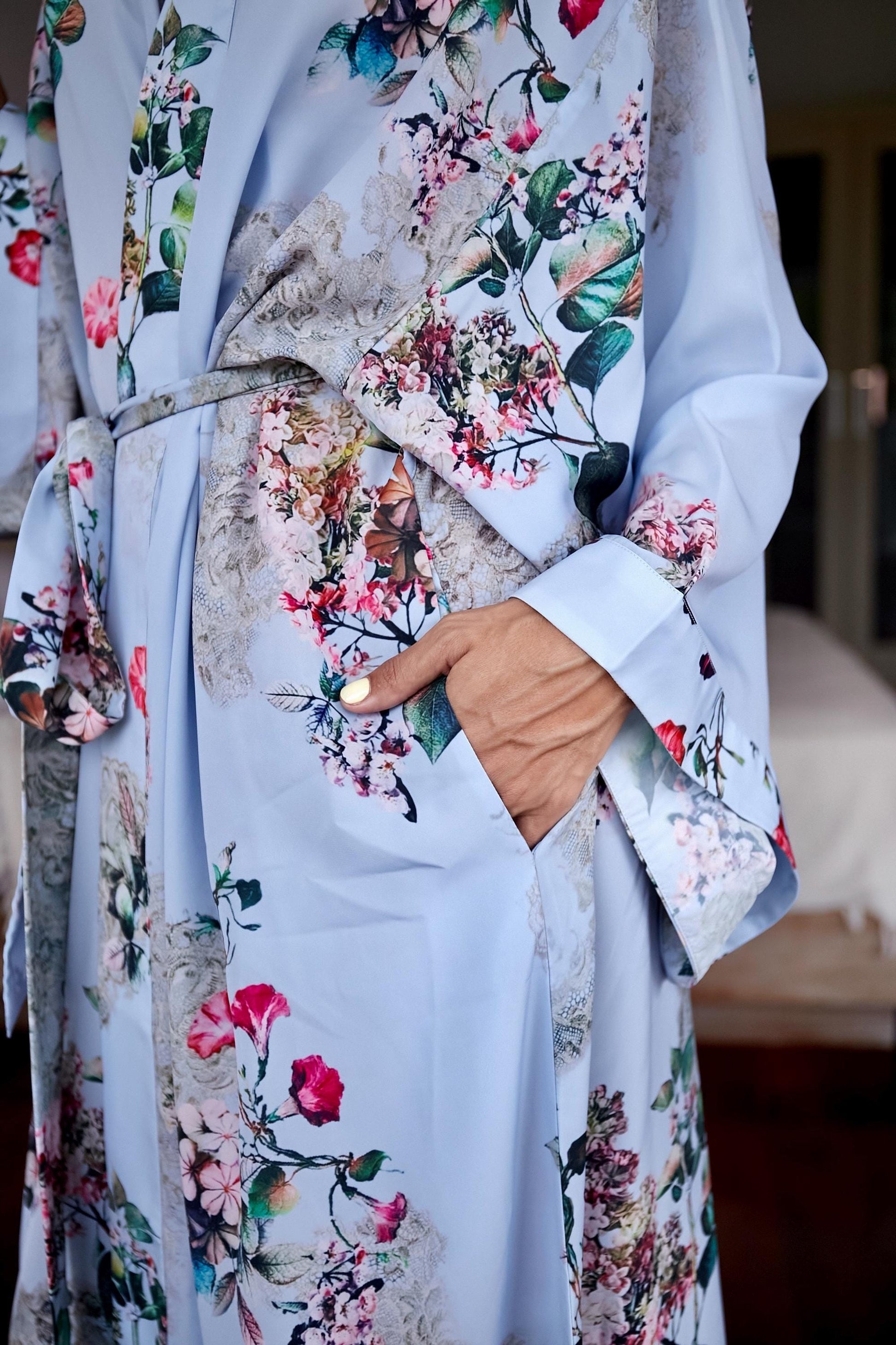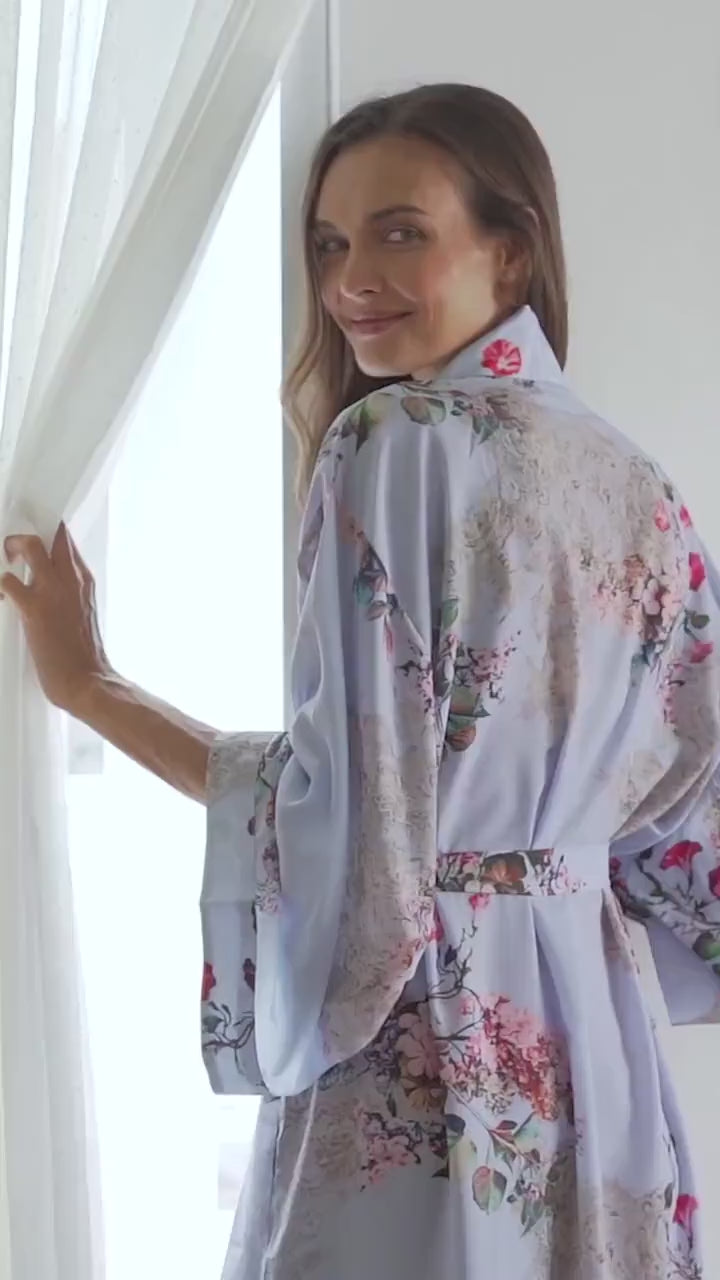 Made from a premium silk blend, this lightweight and breathable dressing gown flows beautifully on the body and feels incredibly soft on the skin. The vivid, painterly prints make each robe a statement of timeless style — elegant, colorful, and unique.